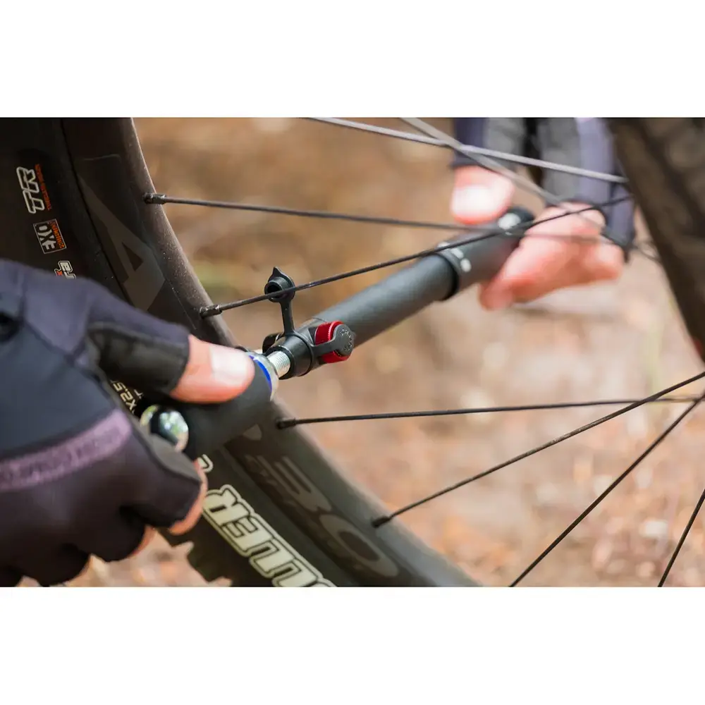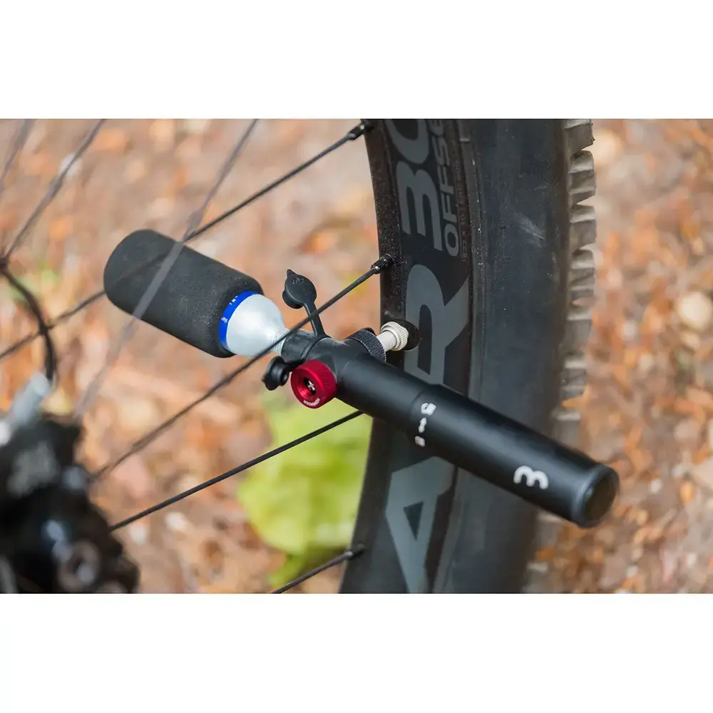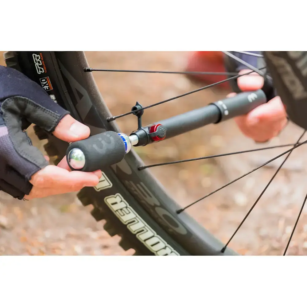 De BBB Cycling CO2 Blaster Mini Combi BMP-33S Minipomp is een normale pomp maar kan ook gebruikt worden met een CO2 patroon. Deze pomp is slecht 135 millimeter waardoor je hem eenvoudig overal mee naartoe neemt. De pomp is geschikt voor presta en schrader ventielen dus je kan hem zowel voor je mountainbike als racefiets gebruiken.