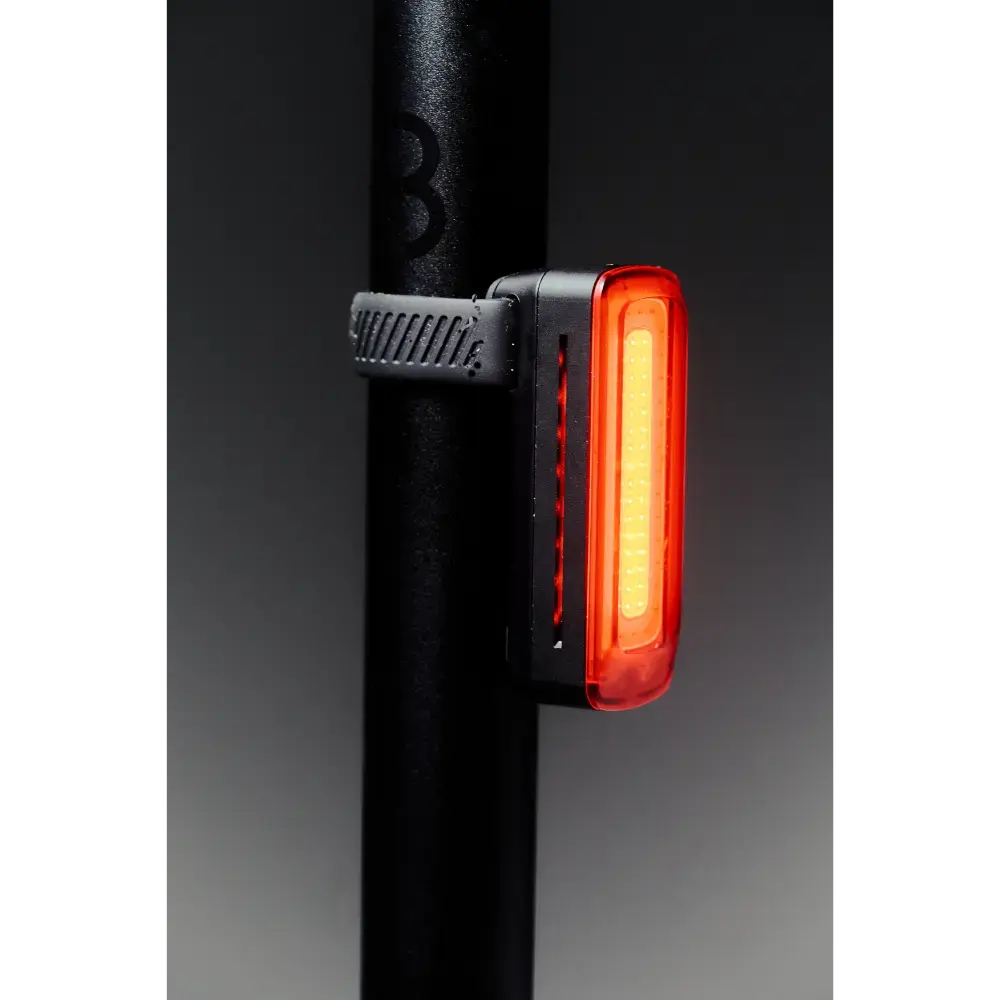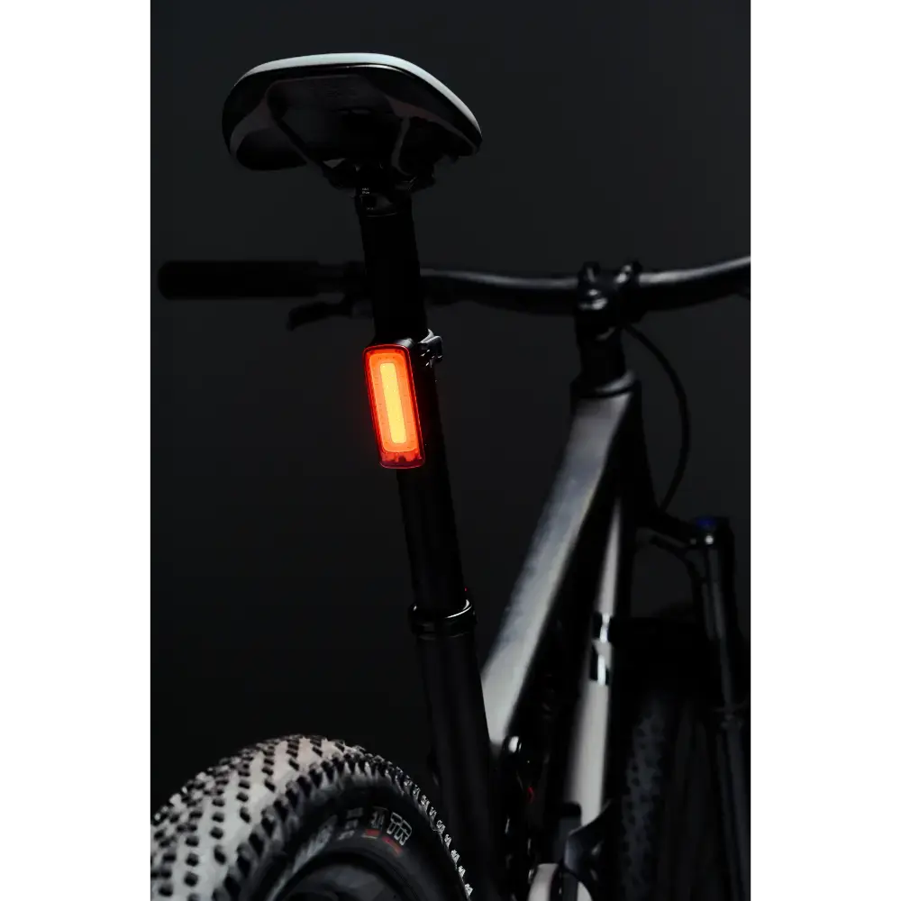 De grotere, helderdere en betere broer van het Signal achterlicht, geeft je optimale zichtbaarheid overdag door de 250 Lumen Day Flash stand. De vorm van de lamp zorgt voor 270 graden zichtbaarheid, zodat je ook door verkeer van de zijkant wordt gespot. De 8 LEDs aan beide zijdes van de lamp laten altijd de actuele batterij status zien. De bediening is eenvoudig, zelfs met winterhandschoenen aan. De mount is geschikt voor alle typen zadelpennen met een diameter tussen 5 en 42 mm. De USB-poort is zelfsluitend, voor een goede bescherming tegen water en stof.