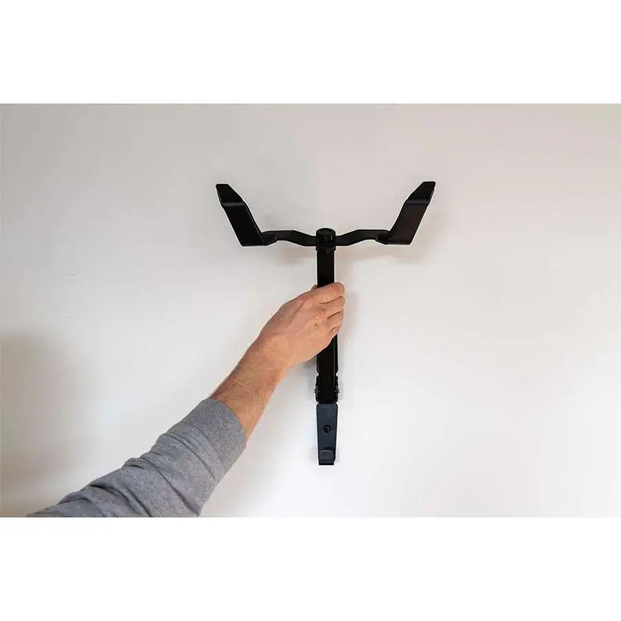 Ik heb deze wandbeugel gekocht voor mijn nieuwe racefiets met aflopende topbuis zodat de fiets mooi recht hangt. De beugels zijn voldoende breed voor de moderne brede bovenbuis. Het ontwerp is simpel, de constructie stevig en de montage kostte me maar 5 minuten.