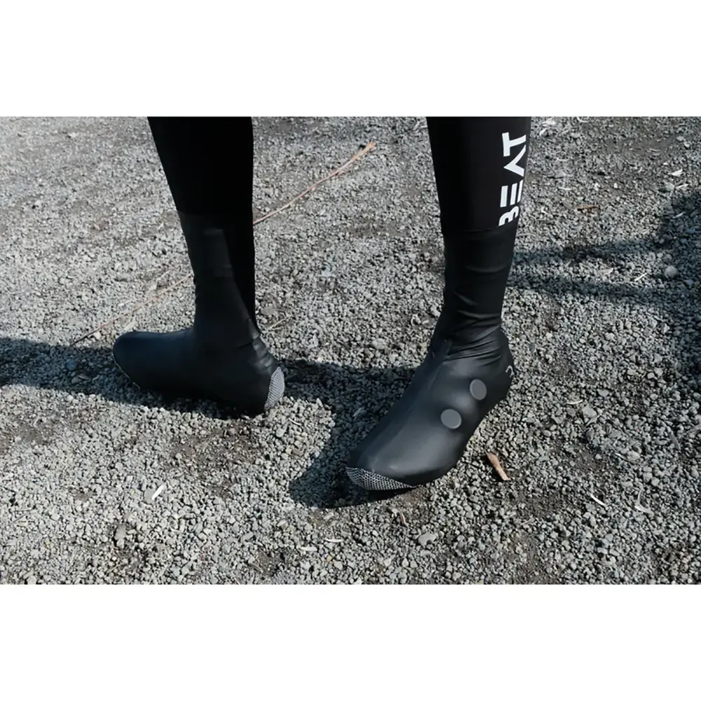 De RaceFlex overschoenen van BBB Cycling beschermen je voeten tegen de elementen. De overschoenen zijn voorzien van een gripper aan de bovenzijde, zodat deze niet van je kuiten afzakt. De stof bij de tenen en op het hielstuk is versterkt, waardoor de overschoenen lang mee gaan. Dankzij de rekbare stof zijn de overschoenen erg flexibel voor maximaal draagcomfort. Daarnaast sluiten ze strak aan wat de aerodynamische eigenschappen van de overschoen ten goede komt.