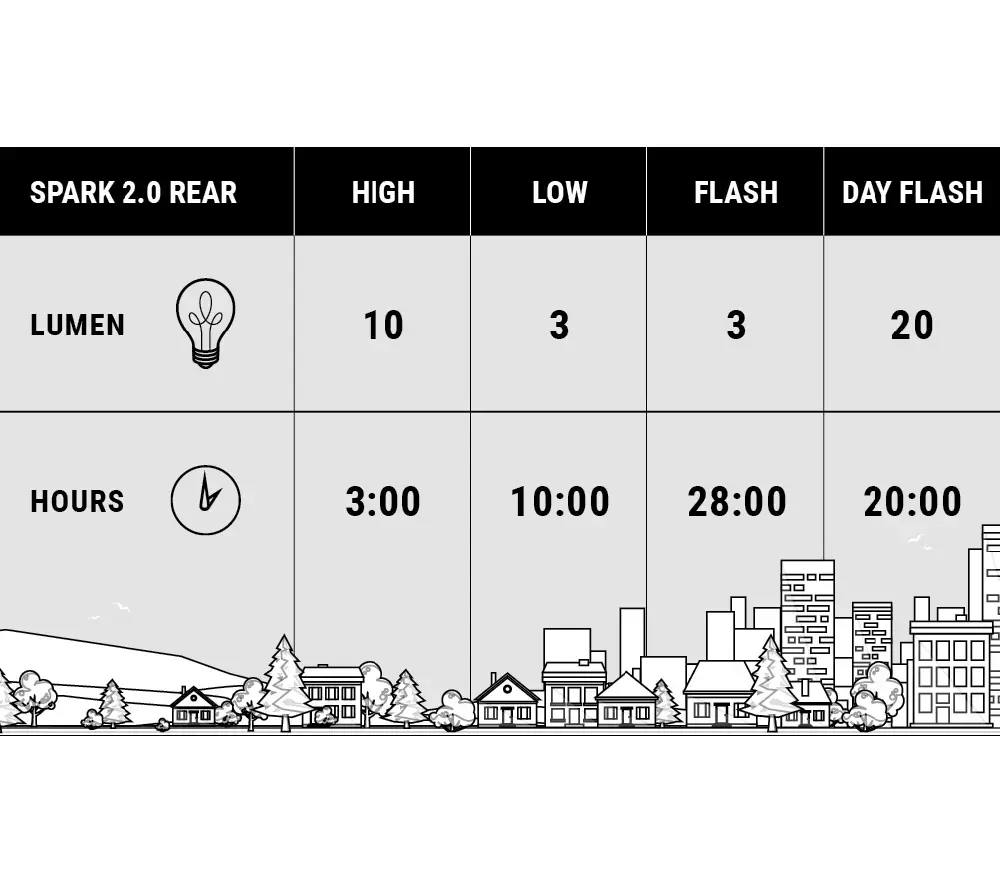 Het BBB Cycling Spark 2.0 BLS-152 Achterlicht is super gemakkelijk in gebruik en zeer compact. De lamp wordt geleverd met een bracket dat past op ronde en aero zadelpennen(Ø5-42mm). Door het slimme ontwerp corrigeert de lamp zijn stand op de hoek van je zadelpen. Zodra de batterij bijna leeg is gaat de Spark 2.0 automatisch over op knipperlicht en zo nog zeker twee uur lang mee.
