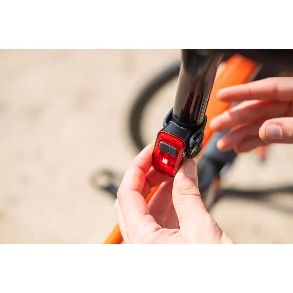 Klein maar goed zichtbaar achterlicht. Speciale dagknipperstand die lang meegaat en goed zichtbaar is. De memorie stand is erg fijn uitzetten door 2 seconden in te drukken. Bij aanzetten staat hij weer op de stand waarin hij uitgezet is.