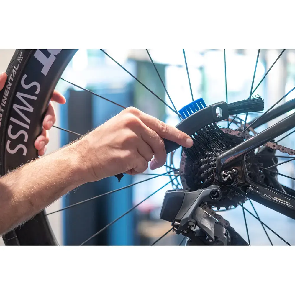 Dankzij deze handige fietstandenborstel heb je geen excuses meer om niet met een kraaknette cassette rond te rijden. Door de aangepaste vorm van de tool en de precisieborsteltjes kan je perfect bij de plek waar het vuil zich ophoopt. Top!