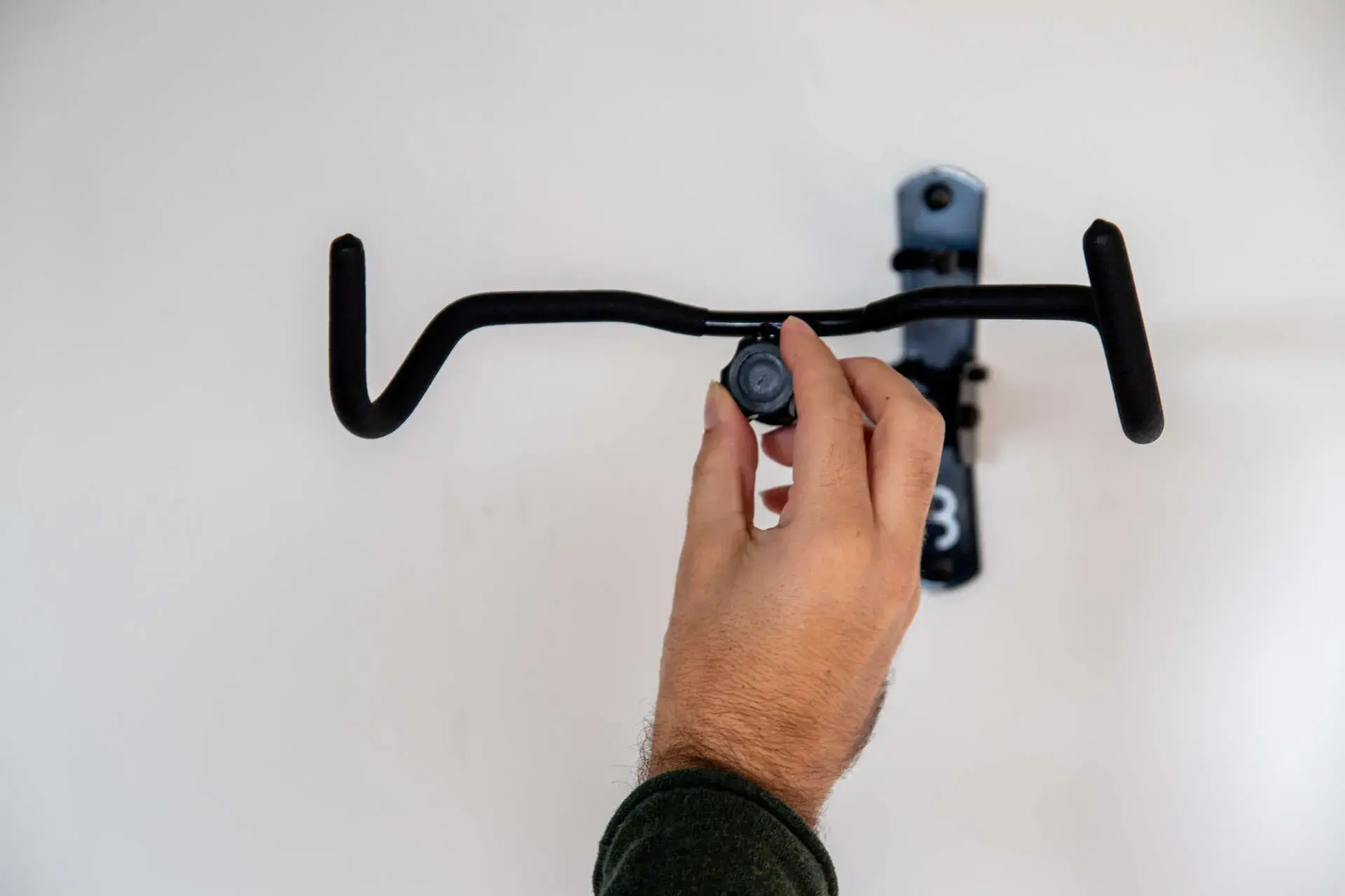 Beugel kan niet goed vastgedraaid worden waardoor deze draait als de fiets niet volledig gecentreerd wordt opgehangen of wanneer je vb. Met de trappers draait