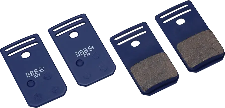 Uitleg metaal: Metalen (gesinterde) remblokken zijn gemaakt van samengeperst metaalpoeder. Ze zijn extreem slijtvast, bieden krachtige remprestaties bij natte en modderige omstandigheden, en presteren uitstekend bij hoge temperaturen. Ideaal voor langdurige afdalingen of extreme omstandigheden, al maken ze doorgaans meer geluid en slijten ze je remschijven sneller.