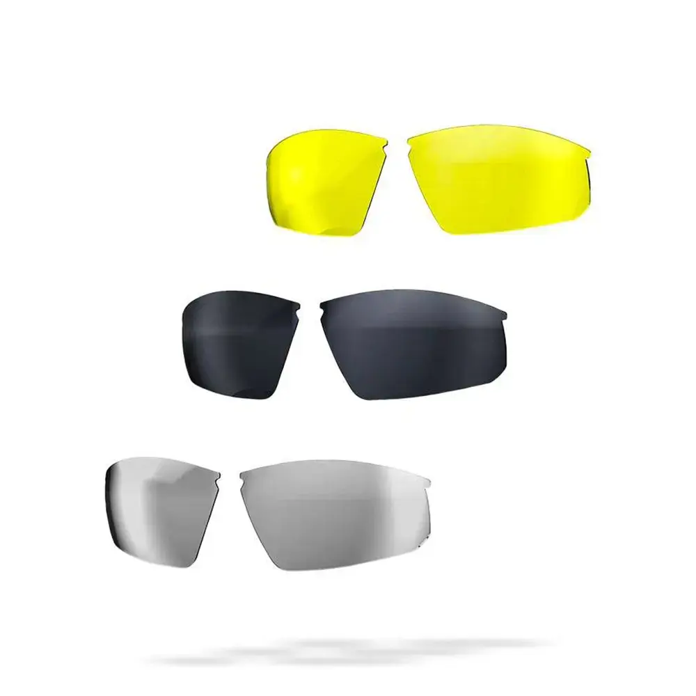 Voordelige maar complete en lichtgewicht Impress BSG-58 Sportbril van BBB Cycling. Met donkere, 100% blokkerende lenzen en een opberghoesje. De bril is voorzien van een sterk montuur met flexibele brilpoten en een comfortabel rubberen neusstuk. Deze kenmerken zorgen voor een optimale pasvorm. De Impress wordt geleverd met een extra setje transparante en gele lenzen. Deze lenzen bieden 100% UV-bescherming en bescherming tegen weersinvloeden, stof/zand en insecten.
