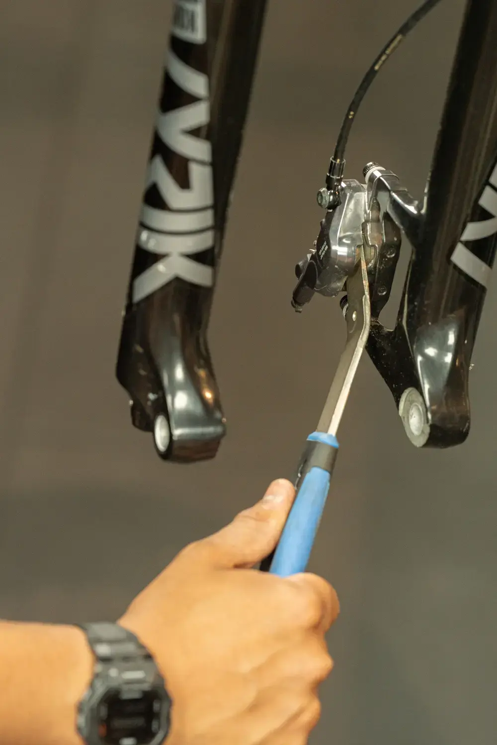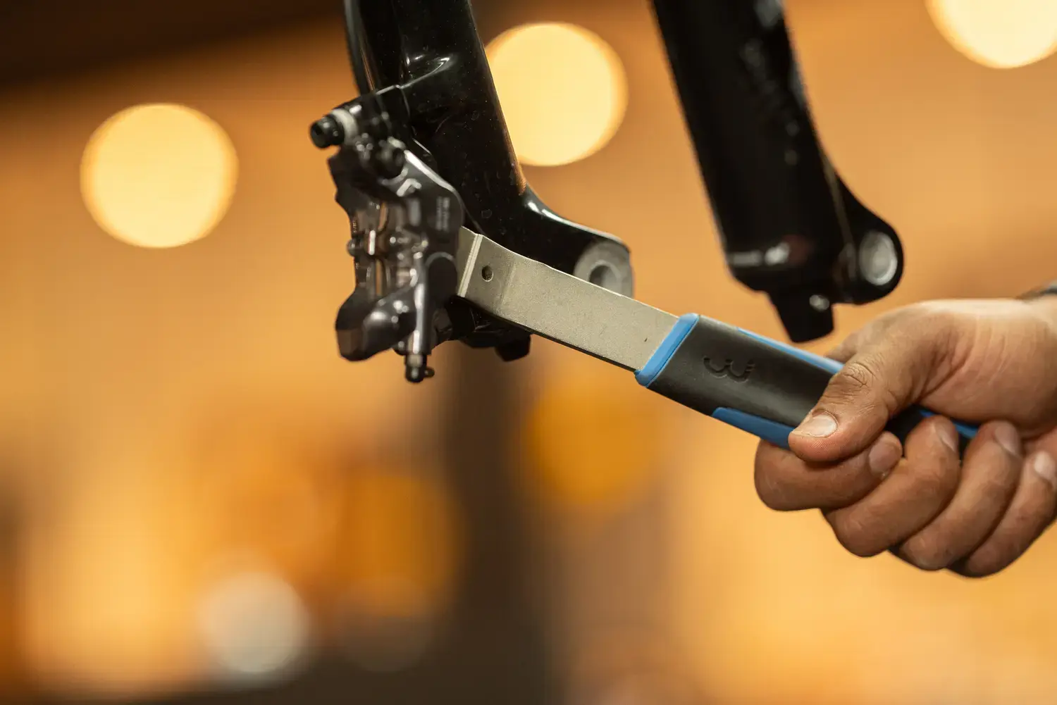 • Handig gereedschap om de hydraulische zuigers terug te drukken bij het vervangen van de remblokken