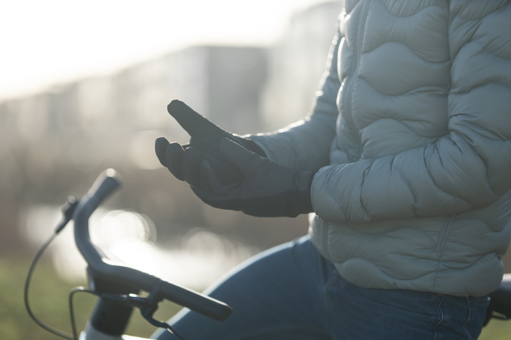 De wijsvinger is touchscreen compatible zodat je altijd je telefoon en fietscomputer kunt blijven bedienen