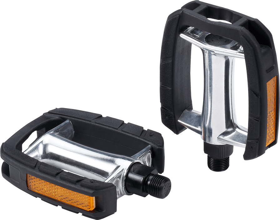 De BBB SteadyRest 2.0 BPD-45B pedalen zijn gemaakt voor comfort, grip en duurzaamheid tijdens je dagelijkse ritten. Deze vernieuwde versie combineert een robuuste aluminium body met een duurzame kunststof kooi van gerecycled materiaal. Het antislip oppervlak van Kraton zorgt voor uitstekende grip, zelfs in natte omstandigheden. Dankzij de CrMo-as met kogellagers draaien de pedalen soepel en blijven ze betrouwbaar in gebruik. Reflectoren aan beide zijden verhogen je zichtbaarheid en dus je veiligheid. Ideaal voor stadsfietsen, trekking en e-bikes!
