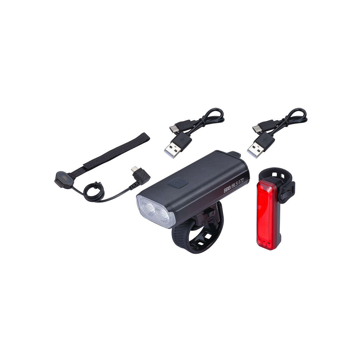 Deze BBB Cycling StrikeDuo 1600 + Minilight Signal BLS-175 Verlichtingsset bevat een 1600 lumen voorlamp en innovatief achterlicht met remfunctie. De BBB Cycling StrikeDuo 1600 BLS-172 Koplamp is van hoge kwaliteit en heeft een zeer krachtige lichtbundel. De lamp kan tot 1600 lumen produceren en is daardoor geschikt voor iedere fiets. De 1600 lumen is voldoende om in het donker te mountainbiken. De ovalen lens geeft een brede lichtbundel die tegenliggers niet verblindt. Toch is de lamp over 180 graden zichtbaar. Op een lagere (knipper)stand gaat de batterij tot 160 uur mee. Als de lamp nog 10% accu over heeft, geeft een indicator dit aan en kun je naar een lagere lichtstand schakelen. Zo kun je altijd veilig thuiskomen van je fietsrit. De lamp is waterdicht volgens de IPX4-normen. De lamp is robuust, want gemaakt van een stevig aluminium. Dit zorgt ook voor een goede warmteafvoer. Opladen gaat via de USB-aansluiting.
