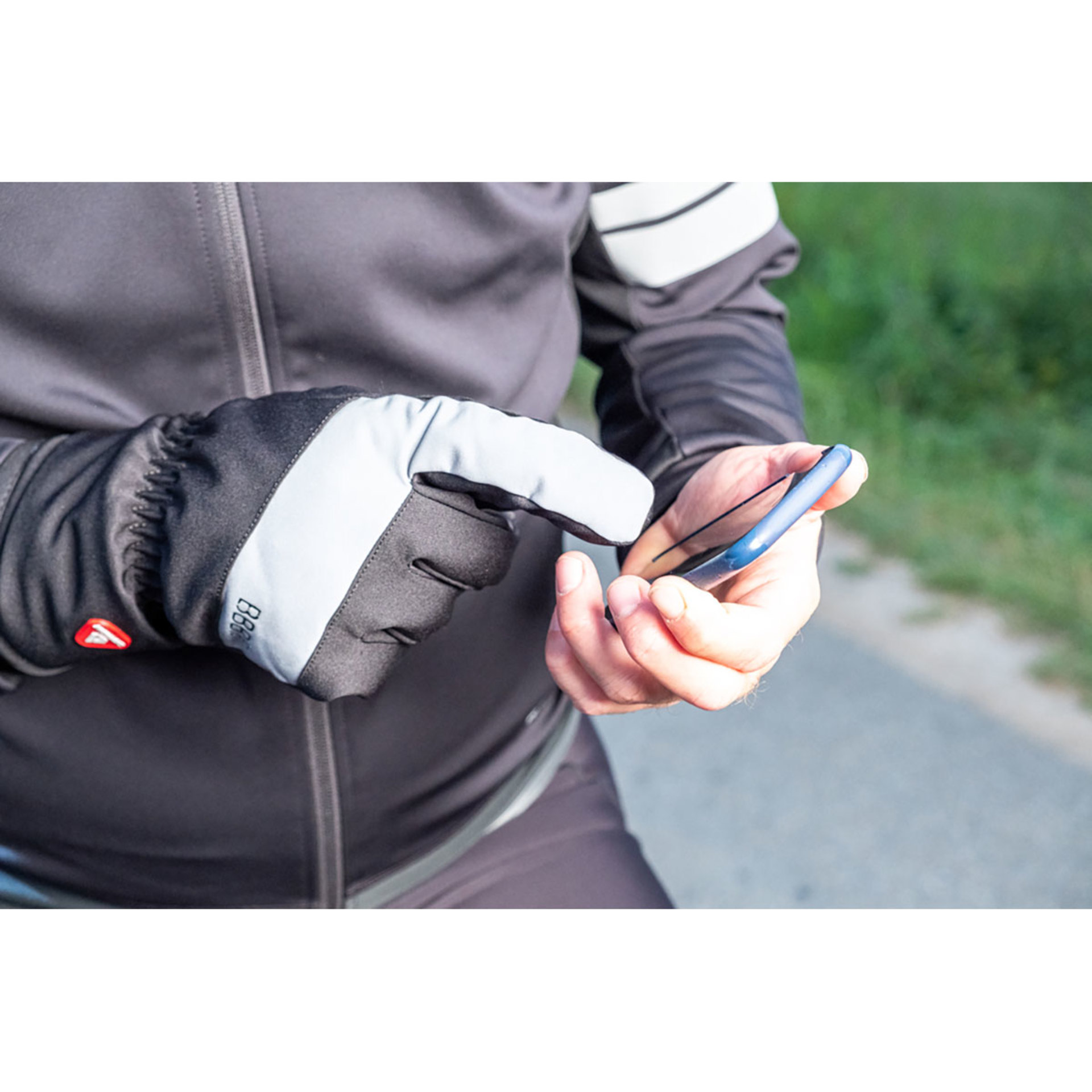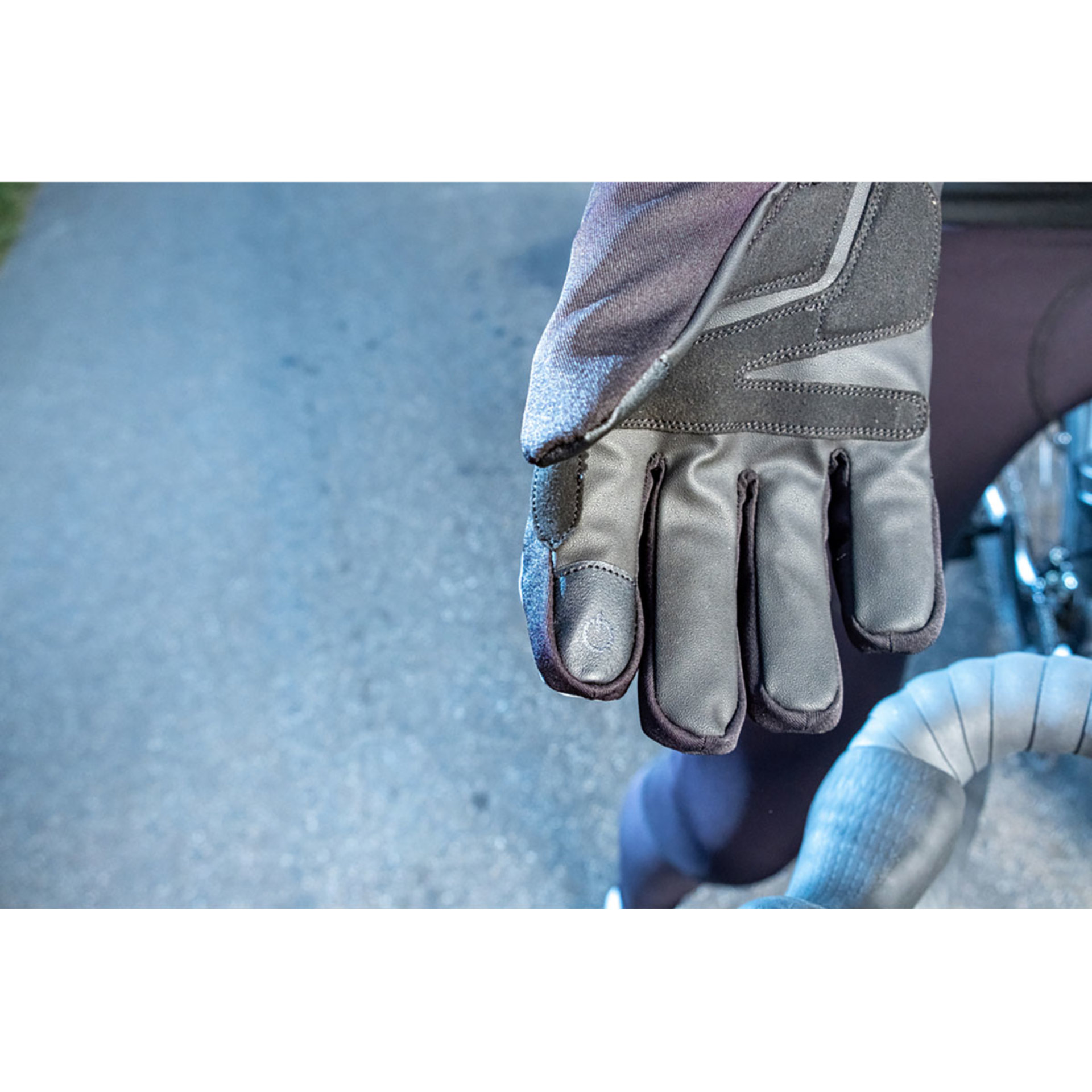 De wijsvinger en duim zijn touchscreen compatible zo kan je altijd je telefoon en fietscomputer blijven gebruiken