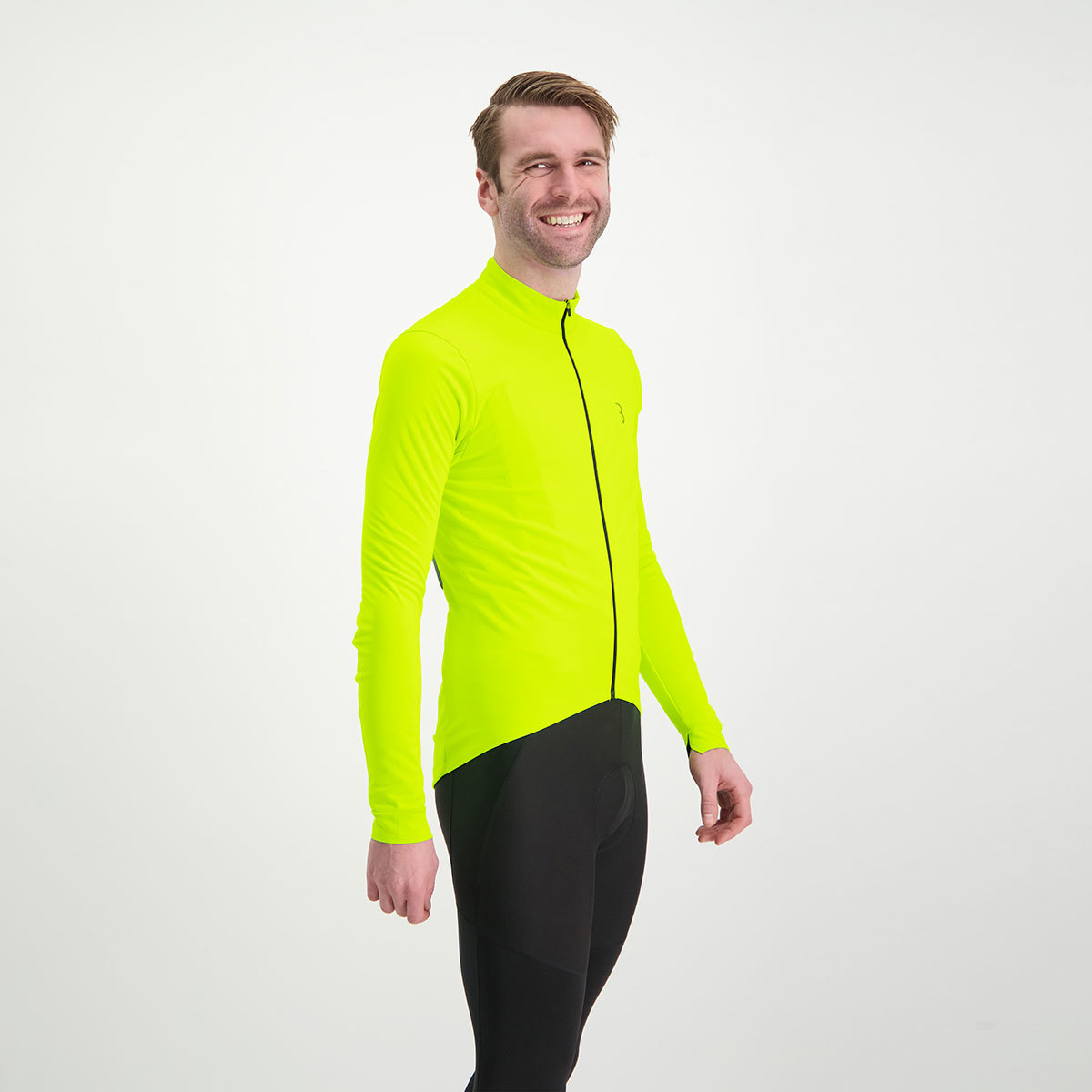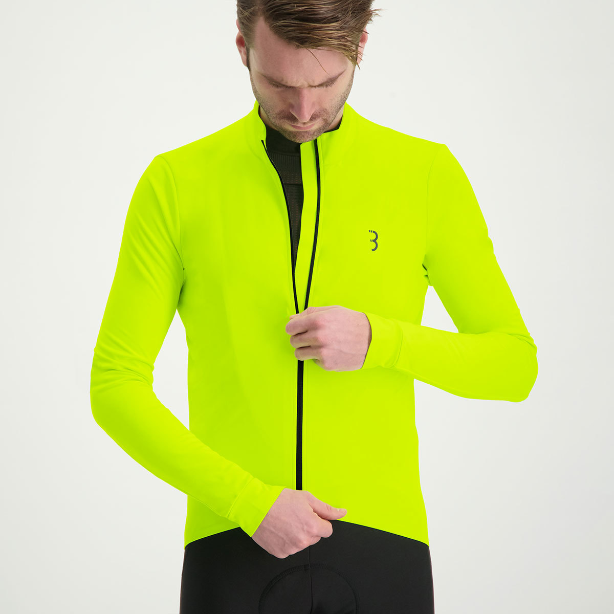 Dit TriGuard 3.0 BBW-452 Fietsjack is wel degelijk fietsjack, maar ziet eruit als een shirt met lange mouwen. De nauwsluitende pasvorm en elastische stof sluit perfect aan om je lichaam als je in de fietshouding zit (Sport fit). Dat is te danken aan het gebruikte Trilite-materiaal. Bijkomend voordeel van dat materiaal is dat het dit jack windbestendig en waterafstotend maakt. Het houdt wind en regen buiten (waterkolom 20.000), maar heeft wel een hoog ademend vermogen (20.000g/m2/24H). Zweet kan dus wel gewoon ontsnappen. Het jack wordt toch niet helemaal waterdicht genoemd, omdat de achterzijde is gemaakt van een ander materiaal. Dit is een heerlijk warm thermisch achterpaneel dat nog beter ademt. De uiteinden van de mouwen zijn dunne manchetten die in je handschoenen kunnen worden geschoven. Zo bescherm je ook je polsen en armen tegen de elementen. Op de achterzijde zitten drie grote achterzakken en een siliconen gripper die het jack op zijn plek houdt.