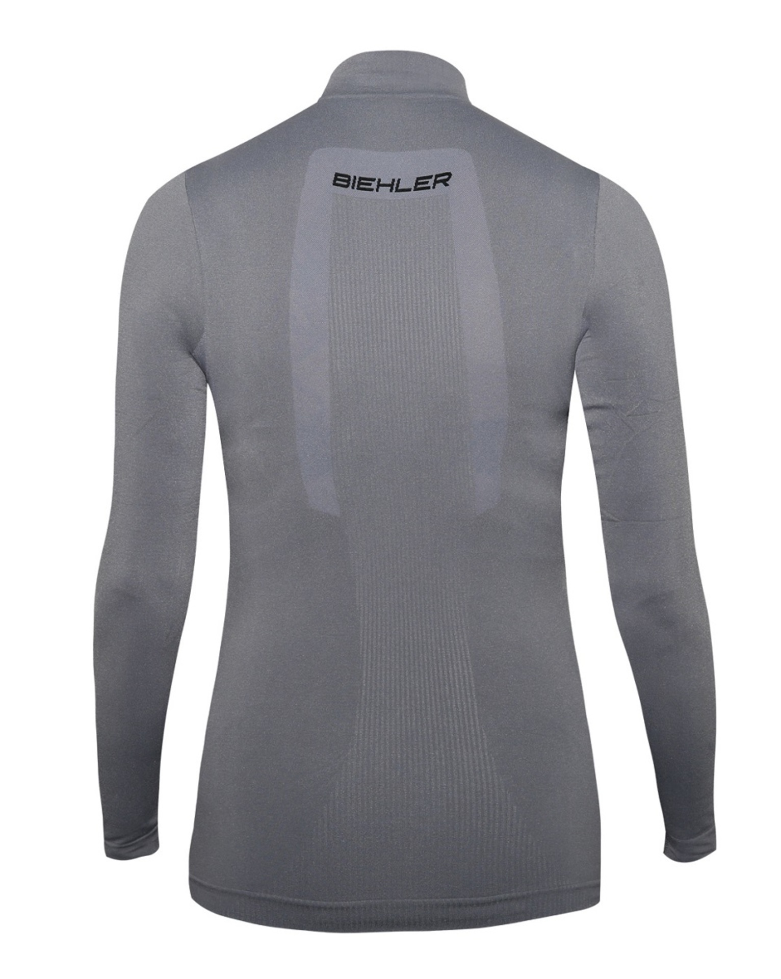 Een goede baselayer kan je dag een positieve boost geven, met deze High Collar Seamless baselayer van Biehler ben je verzekerd van die boost. Het shirt zorgt ervoor dat je niet te snel afkoelt als je stilstaat of klaar bent met je inspanning. De 3-D gebreide structuur ondersteunt je spieren en creëert een warmte-isolerende luchtlaag op je lichaam. De extra hoge kraag zorgt ervoor dat je nek en hals niet wordt blootgesteld aan koude wind op de blote huid. Met oog voor het milieu heeft Biehler gebruik gemaakt van vezels met gerecyclede materialen, daarmee dragen zij een steentje bij aan de bescherming van de aarde.