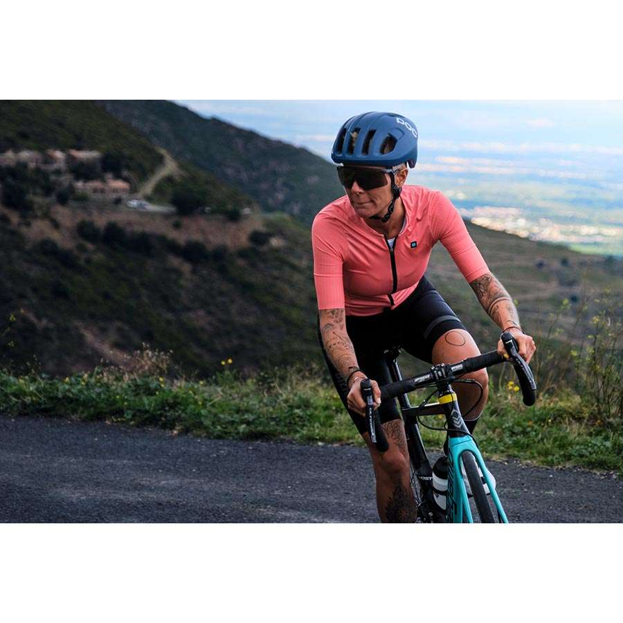 De extra lage kraag maakt dit fietsshirt perfect voor hoge temperaturen in de zomer