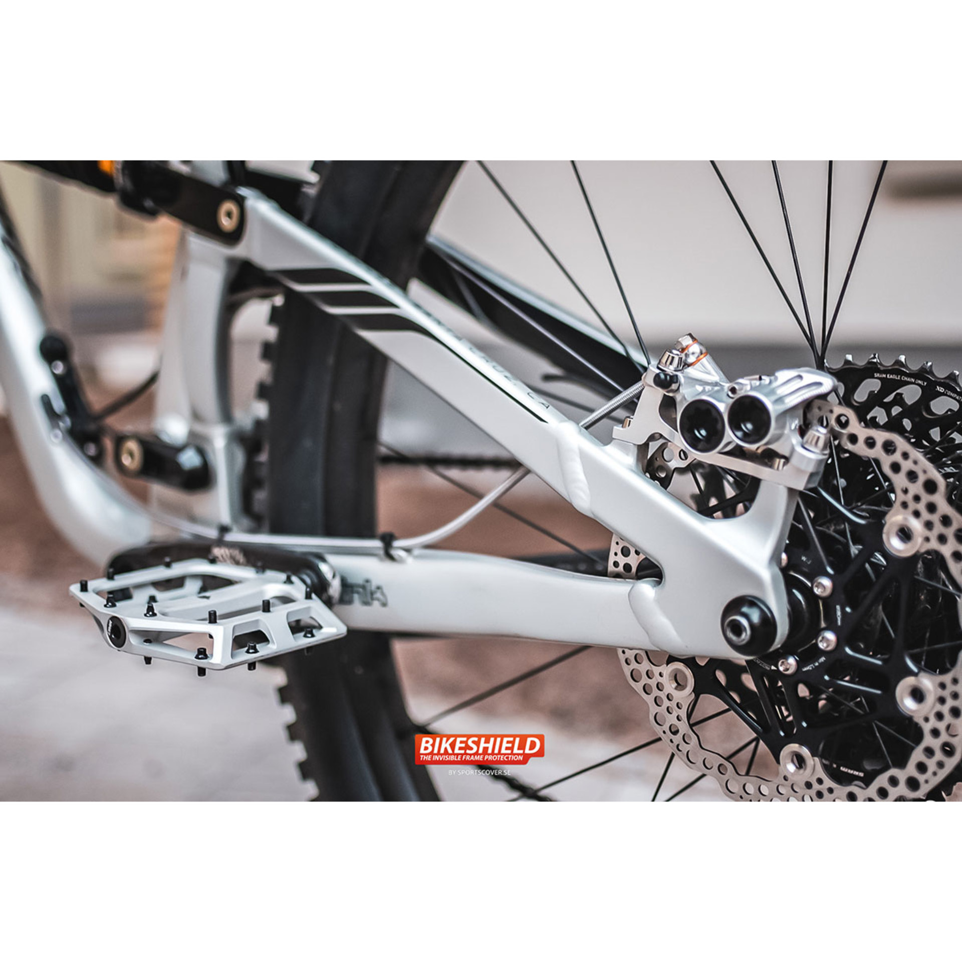 Met de nieuwe Premium kits van Bikeshield bescherm je jouw fiets nog beter! Door het contact met kabels, takken, ketting, grind of stenen kan je frame lelijk beschadigen. Met de frameprotectie van BikeShield is dat eenvoudig en voordelig te voorkomen. De folie is wat dikker dan gebruikelijk, maar herstelt zichzelf zodra het beschadigd raakt. De stickers zijn heel gemakkelijk aan te brengen en te verwijderen, zonder dat er lijmresten achter blijven. Dankzij de UV protectie vervagen of verkleuren de stickers niet waardoor ze nagenoeg onzichtbaar blijven.