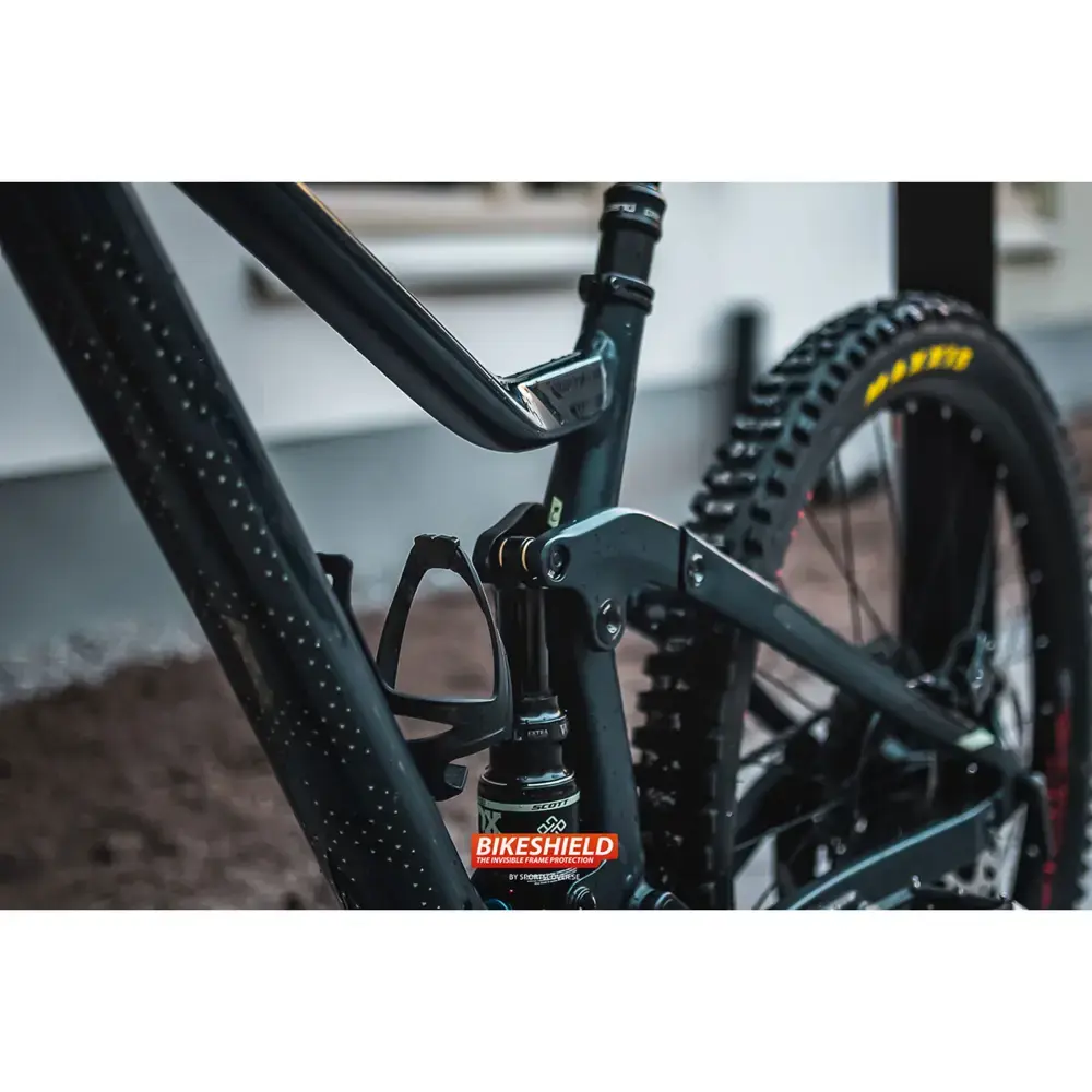 Ik heb bikeshield aangebracht aan de onderzijde van de onderbuis van mijn MTB. Was gemakkelijk aan te brengen en het logo blijft perfect zichtbaar. Gekozen voor mat en dat bevalt prima. In praktijk heeft het een zacht glanzend aspekt, niet zo mat als mijn carbonframe. Zeker niet storend.