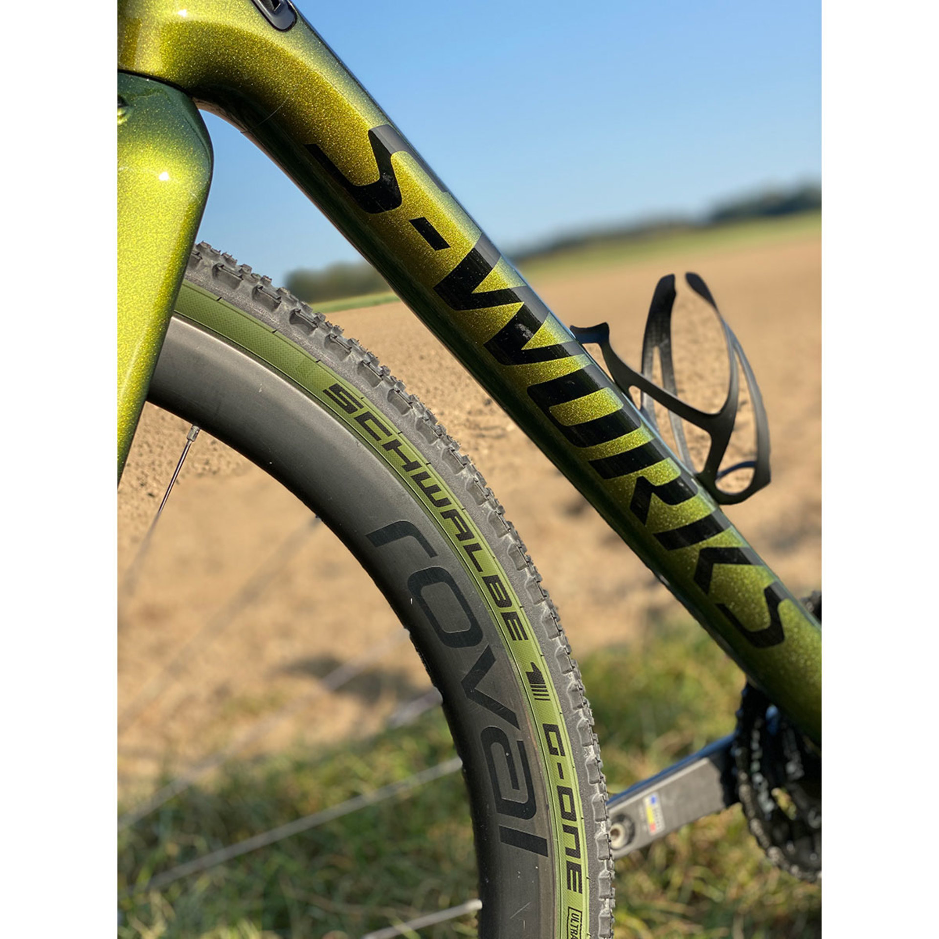 Dikke beschermfolie die je eigenlijk niet ziet zitten. Heb het aangebracht op mijn onderbuis en een stukje onder mijn bidonhouder (de bidon drukt net wat op t frame en gaf met gestuiterd een schaafplekje). Makkelijk op maat te knippen en hecht super goed.