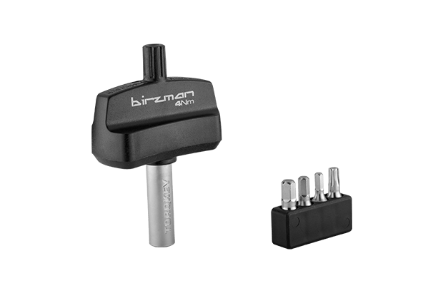 De Birzman Torque Driver 4NM is een makkelijk mee te nemen momentsleutel met diverse bitjes. De sleutel heeft een vast draaimoment van 4 Nm. Meegeleverde bitjes: inbus 3, 4 & 5mm + Torx 25.