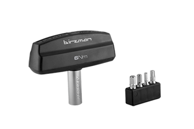 De Birzman Torque Driver 6NM is een makkelijk mee te nemen momentsleutel met diverse bitjes. De sleutel heeft een vast draaimoment van 6 Nm. Meegeleverde bitjes: inbus 3, 4 & 5mm + Torx 25.