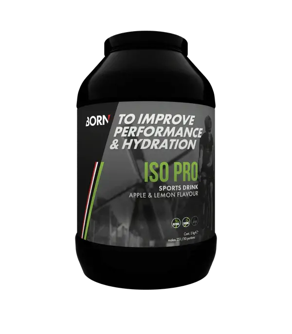 De Iso Pro energiegevende dorstlesser van Born heeft toegevoegde mineralen voor het op peil houden van je energie- en vochtbalans. De Born ISO PRO heeft een verfrissende appel/citroen smaak en levert een snelle energieopname door de 2:1 verhouding van Glucose / Fructose. Hierdoor wordt tevens het maag- en darmstelsel minder belast. Tijdens een inspanning verbrand je koolhydraten. Daarnaast treedt verlies van vocht en mineralen op. Dit heeft een effect op jouw prestatie: vochtverlies van 2% van je lichaamsgewicht kan resulteren in een vermindering van prestaties met 10%! Het aanvullen van mineralen en vocht is daarom erg belangrijk. Als je BORN ISO PRO drinkt, voorkom je verlies van prestatieniveau en houd je jouw vochtbalans op peil. Daarnaast worden belangrijke koolhydraten aangevoerd, die helpen om de mineralen en vloeistof snel op te nemen. Hiervoor is nauw samengewerkt met de renners en stafleden voor een optimaal resultaat. Doordat deze drank zowel vocht, mineralen als koolhydraten aanvult is deze sportdrank ideaal voor de fanatieke duursporter.