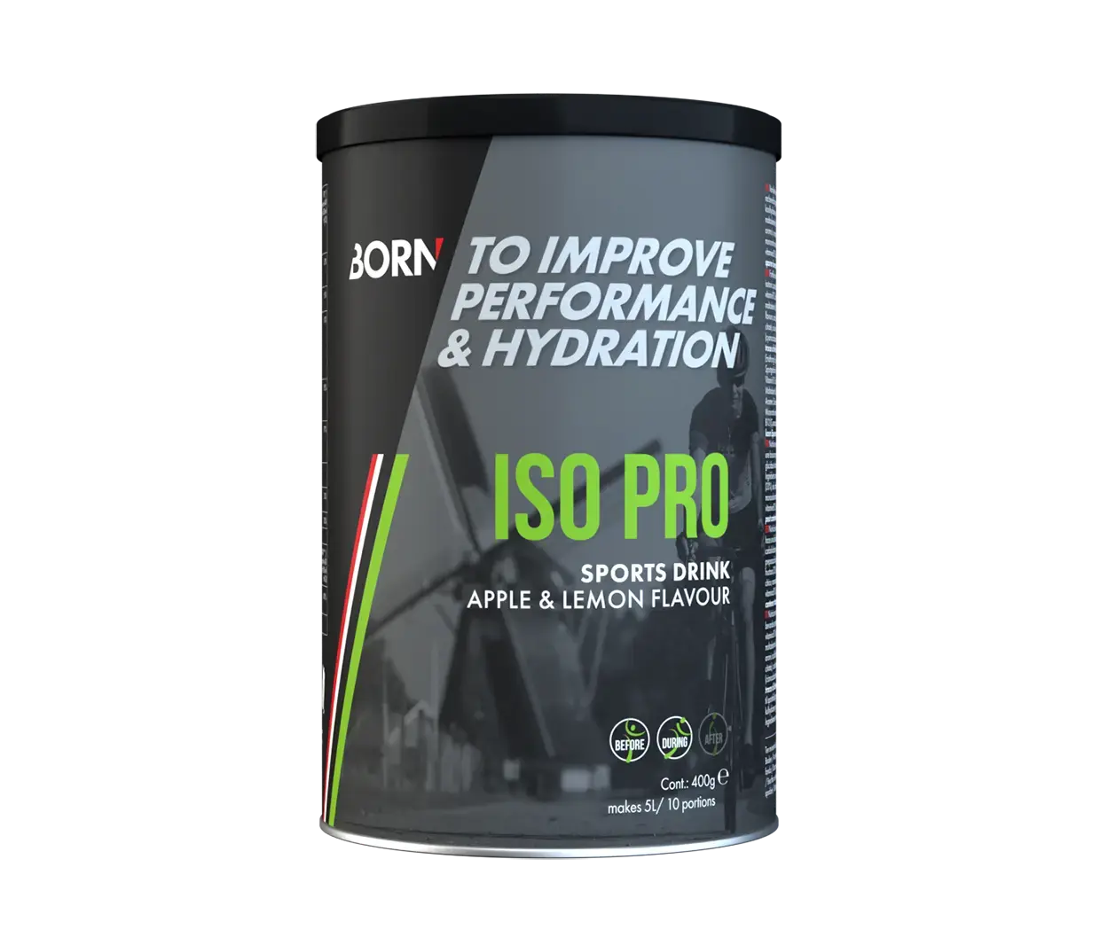 De Iso Pro energiegevende dorstlesser van Born heeft toegevoegde mineralen voor het op peil houden van je energie- en vochtbalans. De Born ISO PRO heeft een verfrissende appel/citroen smaak en levert een snelle energieopname door de 2:1 verhouding van Glucose / Fructose. Hierdoor wordt tevens het maag- en darmstelsel minder belast. Tijdens een inspanning verbrand je koolhydraten. Daarnaast treedt verlies van vocht en mineralen op. Dit heeft een effect op jouw prestatie: vochtverlies van 2% van je lichaamsgewicht kan resulteren in een vermindering van prestaties met 10%! Het aanvullen van mineralen en vocht is daarom erg belangrijk. Als je BORN ISO PRO drinkt, voorkom je verlies van prestatieniveau en houd je jouw vochtbalans op peil. Daarnaast worden belangrijke koolhydraten aangevoerd, die helpen om de mineralen en vloeistof snel op te nemen. Hiervoor is nauw samengewerkt met de renners en stafleden voor een optimaal resultaat. Doordat deze drank zowel vocht, mineralen als koolhydraten aanvult is deze sportdrank ideaal voor de fanatieke duursporter.