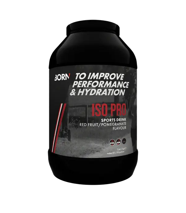 De Iso Pro energiegevende dorstlesser van Born heeft toegevoegde mineralen voor het op peil houden van je energie- en vochtbalans. De Born ISO PRO heeft een verfrissende rood fruit/granaatappel smaak en levert een snelle energieopname door de 2:1 verhouding van Glucose / Fructose. Hierdoor wordt tevens het maag- en darmstelsel minder belast. Tijdens een inspanning verbrand je koolhydraten. Daarnaast treedt verlies van vocht en mineralen op. Dit heeft een effect op jouw prestatie: vochtverlies van 2% van je lichaamsgewicht kan resulteren in een vermindering van prestaties met 10%! Het aanvullen van mineralen en vocht is daarom erg belangrijk. Als je BORN ISO PRO drinkt, voorkom je verlies van prestatieniveau en houd je jouw vochtbalans op peil. Daarnaast worden belangrijke koolhydraten aangevoerd, die helpen om de mineralen en vloeistof snel op te nemen. Hiervoor is nauw samengewerkt met de renners en stafleden voor een optimaal resultaat. Doordat deze drank zowel vocht, mineralen als koolhydraten aanvult is deze sportdrank ideaal voor de fanatieke duursporter.