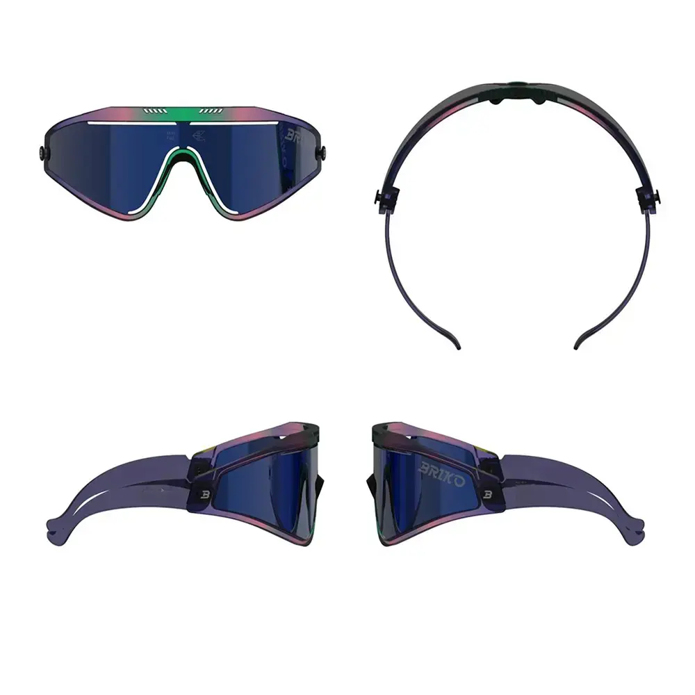 De Briko Detector Sport Zonnebril Zwart met Blauwe lens is een bril met zeer breed gezichtsveld. De bril heeft namelijk het lage gewicht van een hardloopbril, maar bedekt je ogen zoals een fietsbril. Het gestroomlijnde maar toch comfortabele design van deze bril sluit nauw aan om je hoofd. De ventilatiegaten in de lenzen voorkomen dat de lenzen beslaan tijdens het fietsen. De bril biedt ook bescherming tegen UV en UVA straling.