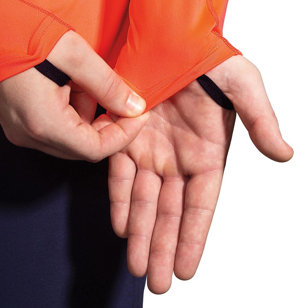 Met de duimgaten aan de mouwen kun je het shirt lekker over je handen heen trekken