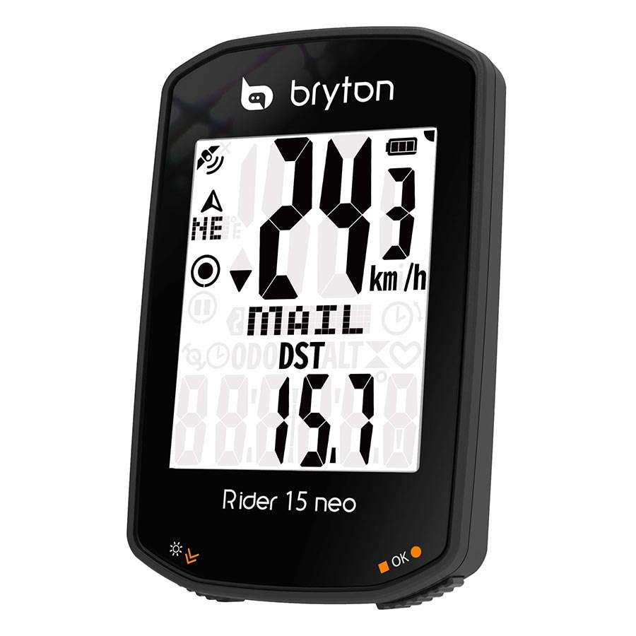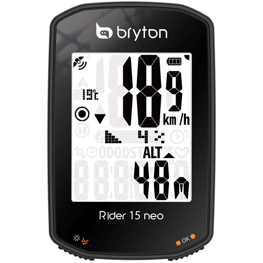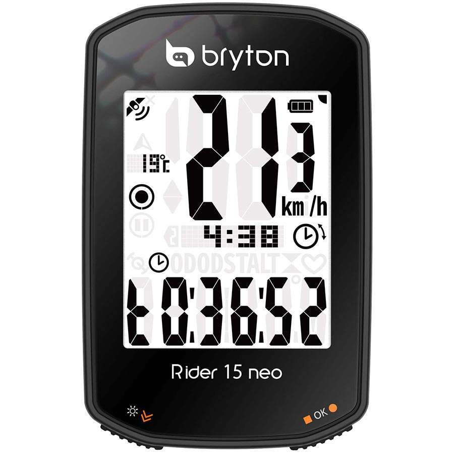 De Bryton Rider 15 NEO biedt een veelzijdige fietscomputer in een voordelig pakket. De Rider 15 NEO biedt alle functies die je écht nodig hebt tegen een zeer scherpe prijs. Hij maakt gebruik van drie verschillende GPS-signalen voor verschillende regio’s en hij wordt ondersteund door het GNSS-systeem (Global Navigation Satellite System). De Rider 15 NEO biedt daardoor een grotere dekking in elk type geografie, ook bij bedekking van bomen en gebouwen, of in de bergen. De superhandige kompasfunctie zorgt ervoor dat je het noorden nooit verliest. Enorm handig als je geen behoefte hebt aan een uitgebreide navigatiefunctie, maar het wel handig vindt om te weten welke windrichting je op rijdt.