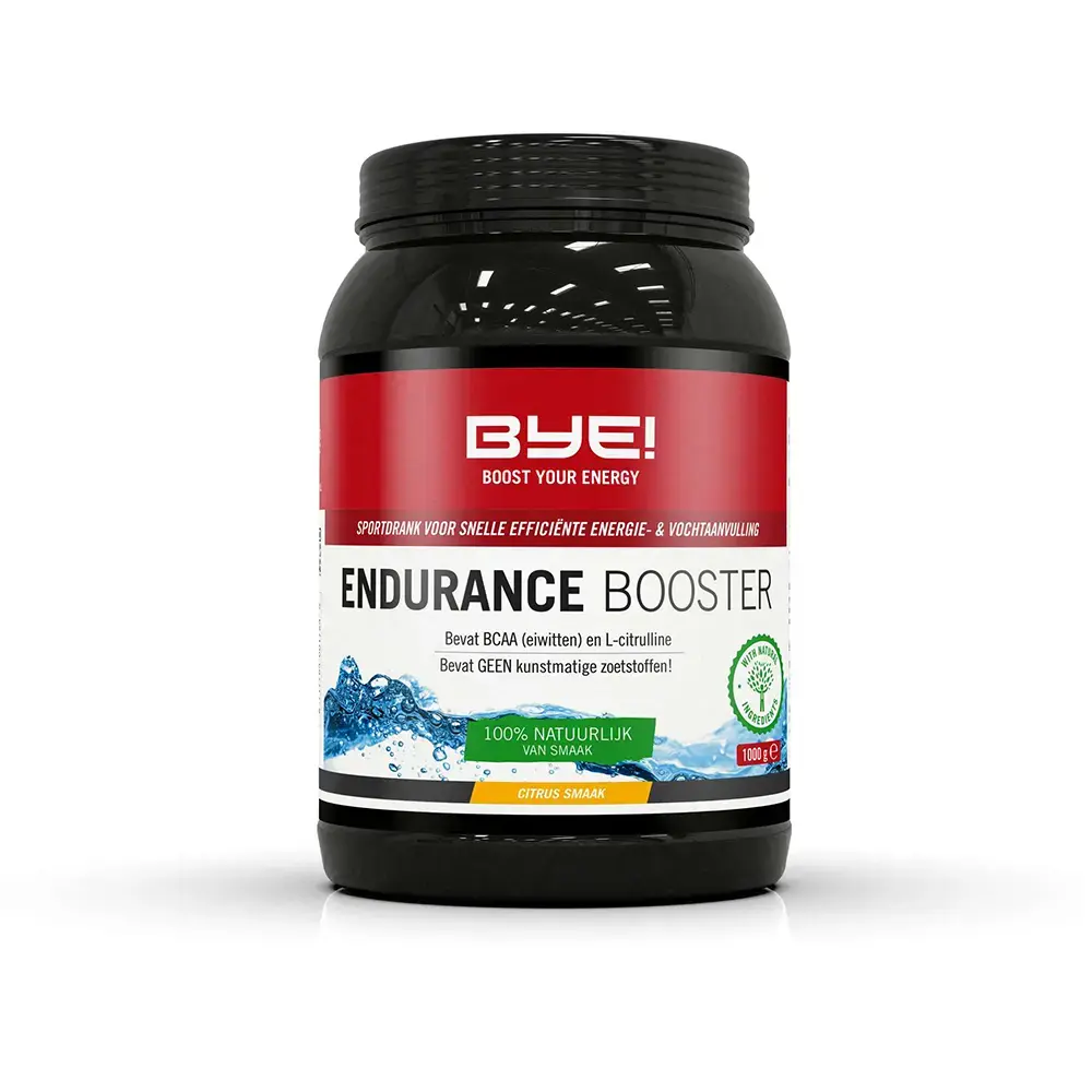 De BYE! Endurance Booster Sportdrank is ideaal voor fanatieke sporters die hun energievoorraad en vochtbalans tijdens intensieve inspanningen van twee uur of langer weer op peil willen brengen. Deze sportdrank met een 100% natuurlijke smaak bevat de Endurance Booster formule, die bestaat uit instant BCAA (snel opneembare eiwitten), L-glutamine, L-Taurine, L-Carnitine en L-Citrulline. Deze laatste stof zorgt ervoor dat je tijdens het sporten beter in staat bent om koolhydraten op te nemen. Ook is uit onderzoek gebleken dat bij inspanningen langer dan 2 uur ook deze stoffen aangevuld moeten worden om goed te kunnen blijven presteren. Zo zorgen de eiwitten ervoor dat er minder afbraak van spieren plaatsvind, met als gevolg een sneller herstel. De combinatie van eiwitten, koolhydraten en elektrolyten zorgen voor een optimale hydratatie en behoud van een energiek gevoel. De sportdrank is niet alleen zeer effectief, maar ook nog eens heerlijk verfrissend en dorstlessend! Wil je maximaal presteren? Deze Endurance Booster Sportdrank is dan onmisbaar!