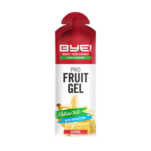 Met deze BYE! Pro fruit gel houdt je jou energieniveau op peil. De gel heeft een aangename smoothie smaak en bevat 20% echt fruit. De 22 gram koolhydraten worden zeer snel opgenomen, zodat altijd volle bak door kunt gaan. De toevoeging van Magnesium zorgt ervoor dat je spieren optimaal blijven werken en minder snel vermoeid raken. De magnesium komt in de vorm van magnesium citraat welke geen actie van het spijsverteringssysteem vergt. Hierdoor worden maag en darm klachten voorkomen.
