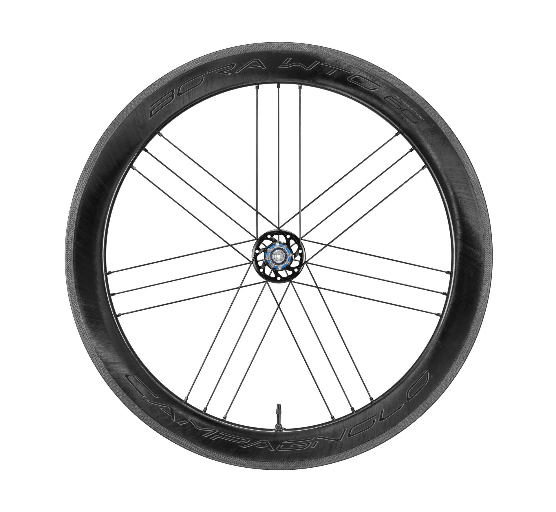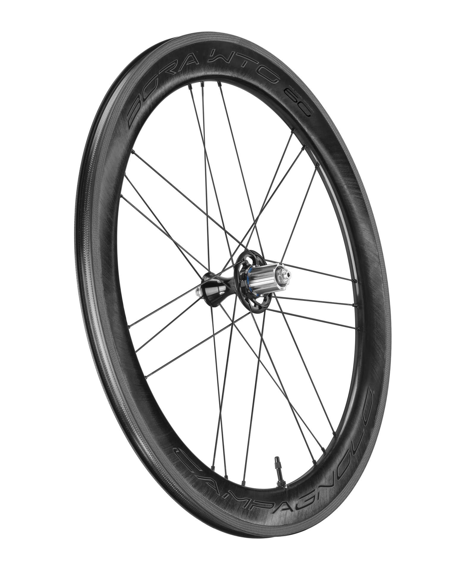 Deze Campagnolo Bora WTO 60 Carbon Race Wielset is ideaal voor wielrenners die graag tijdrijden maar ook ideaal voor triatleten. In ieder geval voor fietsers die op zoek zijn naar snelheid, veel snelheid! Als je vaak boven de 40 km/h uitkomt dan biedt deze wielset je net dat beetje extra. De wielset is uitvoerig getest in de windtunnel. Hierbij zijn de ultieme omstandigheden vastgesteld bij deze 60mm hoge wielen. Namelijk wanneer de wind met een hoek van 12 of 19 graden op je af komt. Dan helpen deze wielen je te excelleren als je in een waaier rijdt. Ook het minimale frontale oppervlak van de naven en quick releases helpen hierbij. Naast aerodynamische eigenschappen wegen deze wielen slechts 1547 gram, dankzij de volledige carbon velg en de aluminium naven en spaken. Deze combinatie zorgt samen met het G3 spaakpatroon in het achterwiel en de uiterst stijve velgen en naven voor een zeer goede krachtoverbrenging op de weg. De efficiënte keramische lagers in de USB-lagers voorkomen dat er iets van deze krachtoverbrenging verloren gaat. Het carbon AC3 remoppervlak zorgt ervoor dat je snel en goed tot stilstand kan komen. In combinatie met de meegeleverde remblokken zorgt dit voor 40% betere remprestaties in nat weer en 20% in droge omstandigheden. Kortom ben je op zoek naar snelheid? Dan ben je met deze Campagnolo Bora WTO 60 Carbon Race Wielset aan het juiste adres.