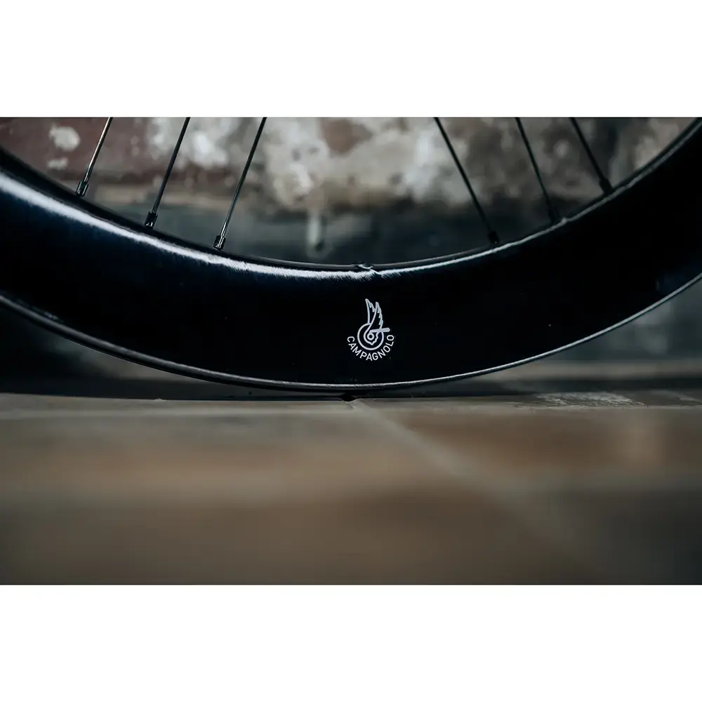 De Campagnolo Bora WTO 60 Carbon Disc Race Wielset is per onderdeel aerodynamisch geoptimaliseerd in de windtunnel. Dat heeft geresulteerd in een zeer aerodynamisch wiel dat voordelen biedt tijdens sprints en optrekken, maar toch zeer licht is. Ideaal voor tijdritten, met heuvels erin. Het wiel is voorzien van nieuwe aerodynamische aluminium naven en het USB cup-and-cone lagersysteem. De binnenbreedte van de velg is 23 mm en is daarmee geschikt voor 25 - 32 mm brede banden. Dankzij de 2-Way fit kunnen dit zowel clinchers als tubeless banden zijn. Ondanks het lage gewicht, is de wielset zeer stevig. Ook is het achterwiel voorzien van het zogeheten G3 spaakpatroon. Het dubbele aantal spaken aan de niet-aandrijfkant verdeelt de krachten die de aandrijving veroorzaakt beter, waardoor het wiel perfect is uitgebalanceerd en tegelijkertijd stijver is, ook tijdens het remmen. De wielset is geschikt voor remschijven met centerlock bevestiging.