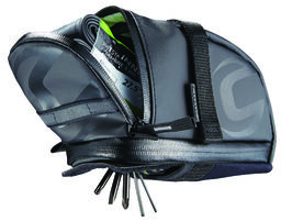 Even getwijfeld tussen small en medium en gelukkige voor mij de juiste keuze gemaakt voor medium. Voldoende ruimt voor een reservebinnenband co2 pompje en catridge. Gemakkelijk te bevestigen en oogt ook mooi onder het zadel.