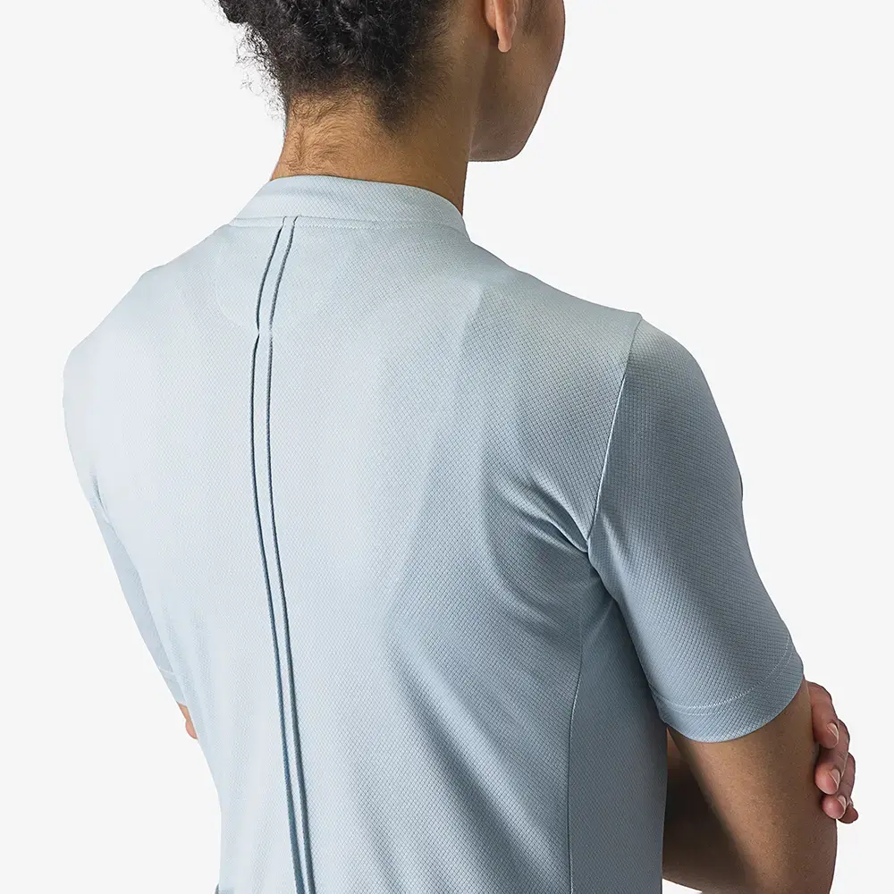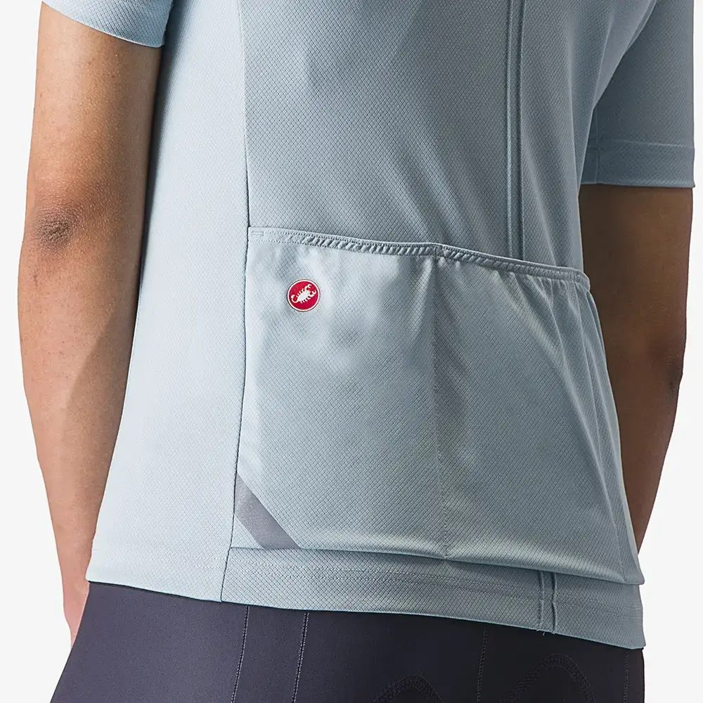 Het Castelli Anima fietsshirt met korte mouwen is een uitstekende keuze voor zowel korte als lange ritten op een mooie zomerse dag. De basis van dit shirt is namelijk het ProSecco Velo Donna materiaal dat je zowel droog als koel houdt. Een contrasterende binnenkraag en afgeschermde ritssluiting geven het een hoogwaardige look. Om ervoor te zorgen dat het shirt ook mooi aansluit en comfortabel is, zijn de mouwen prachtig afgewerkt en is de achterzijde verlengt. Daardoor blijft het shirt zelfs perfect op zijn plek zitten als je iets uit een van de steekzakken pakt. Reflecterende elementen en siliconen grippers maken het af.