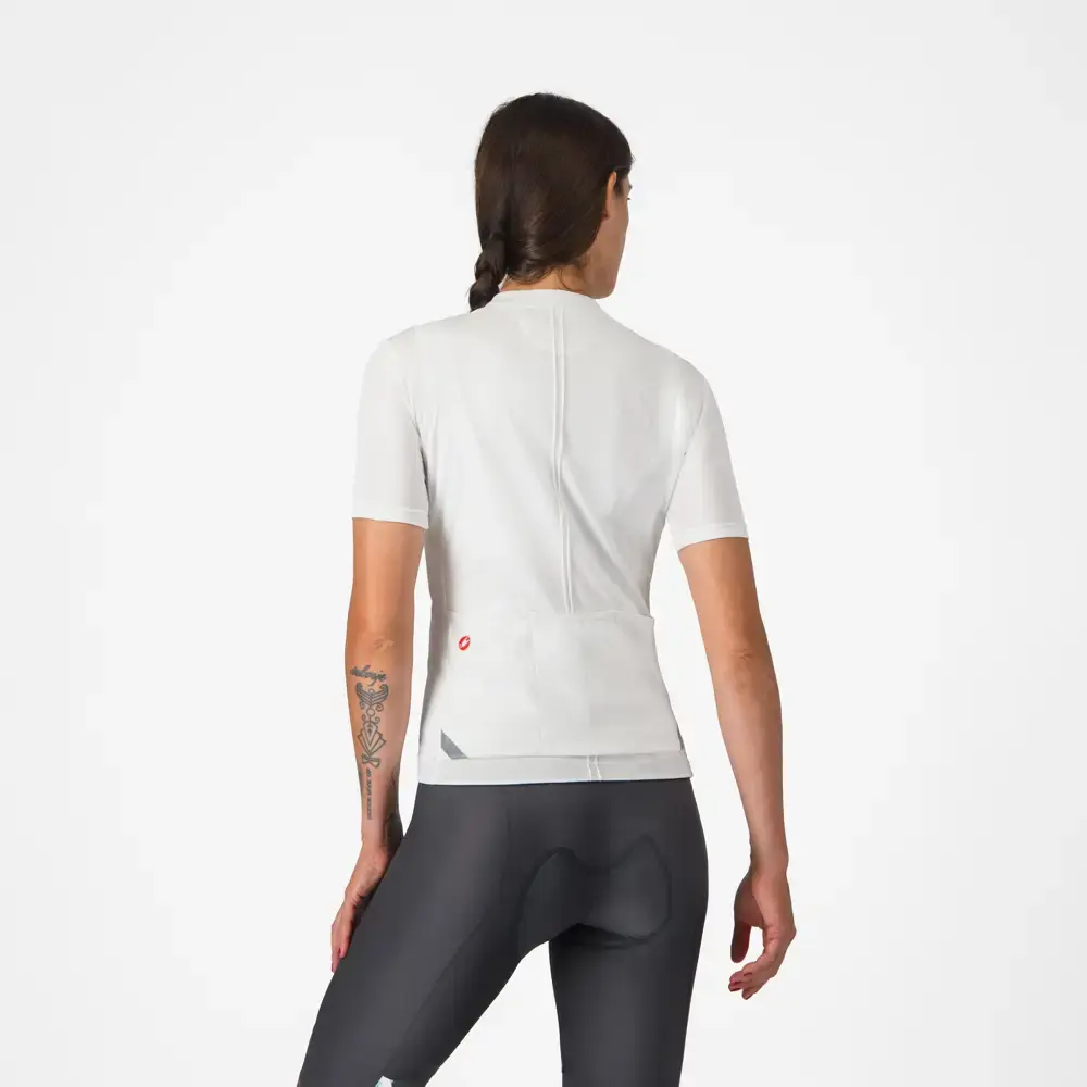 Het Castelli Anima fietsshirt met korte mouwen is een uitstekende keuze voor zowel korte als lange ritten op een mooie zomerse dag. De basis van dit shirt is namelijk het ProSecco Velo Donna materiaal dat je zowel droog als koel houdt. Een contrasterende binnenkraag en afgeschermde ritssluiting geven het een hoogwaardige look. Om ervoor te zorgen dat het shirt ook mooi aansluit en comfortabel is, zijn de mouwen prachtig afgewerkt en is de achterzijde verlengt. Daardoor blijft het shirt zelfs perfect op zijn plek zitten als je iets uit een van de steekzakken pakt. Reflecterende elementen en siliconen grippers maken het af.