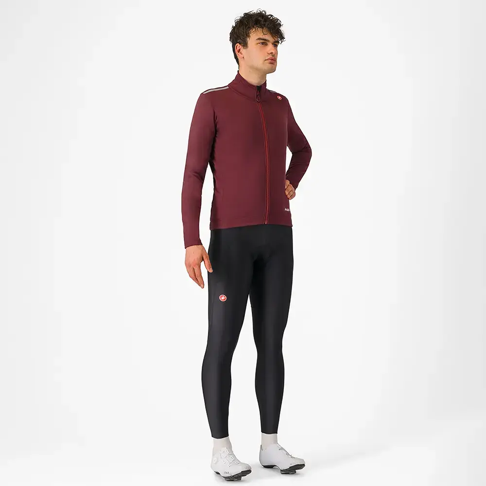 De Castelli Espresso Fietsbroek houdt je benen lekker warm bij droog en koud weer. De broek met thermoflex stof met geborstelde fleecevoering zit comfortabel en warm om je benen. Dankzij het comfortabele Progetto X2 Air zeem is hij perfect voor langere ritten. De broek is niet waterdicht of waterafstotend. Het mesh materiaal op de bretels voert zweet goed af en zit comfortabel om je lichaam. Bovendien zorgen de reflecterende details voor verbeterde zichtbaarheid!