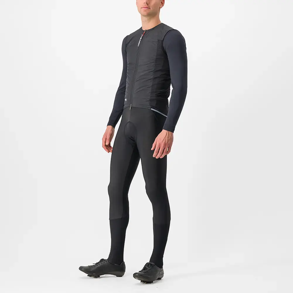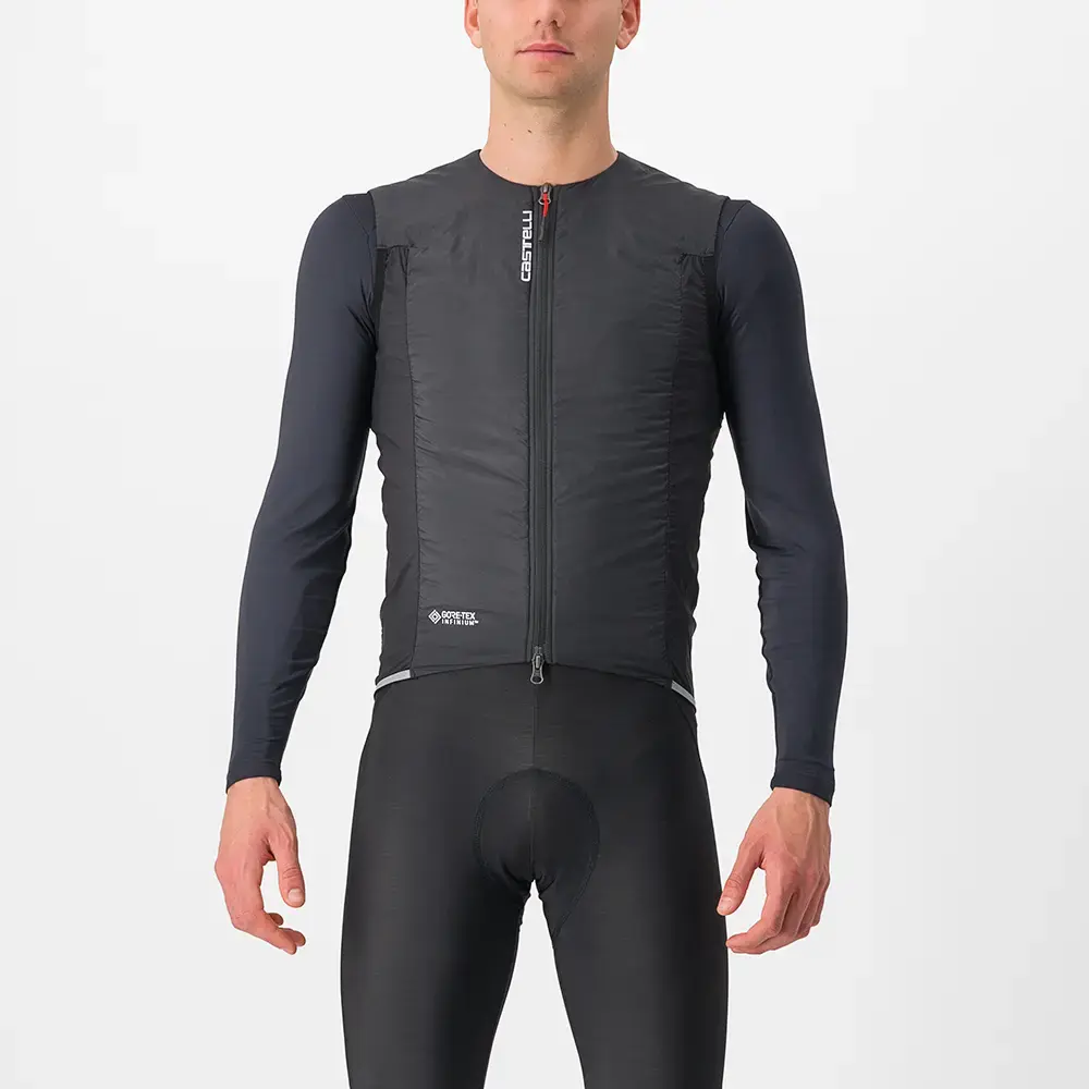 Met de Fly collectie gaat castelli de strijd aan met het vooroordeel dat winterkleding zwaar en log moet zijn. Dit is extreem goed gelukt bij de Fly Windvest met een gewicht onder de 100 gram! Dit windvest is bedoeld als extra laag voor wanneer je aan het warmrijden of aan het uitrijden bent bij wat minder warme temperaturen in het late najaar of in de vroege herfst. Het windvest heeft een lage kraag die direct aansluit op de borst, waardoor de wind geblokkeerd wordt. Zoals de rest van de Fly-collectie heeft dit vest een YKK Vision Zipper, die twee kanten op te openen is. Met drie zakken aan de achterkant biedt de Fly Windvest veel ruimte om spullen mee te nemen. Één van de zakken heeft een rits, zodat je waardevolle spullen er niet uit kunnen vallen. Bij dit product maakt Castelli gebruik van verschillende lagen stof: de Fly SL-laag is gemaakt van 100% gerecycled materiaal en houdt water buiten. De Clima SL-laag zorgt voor de warmte en de Gore-Tex Infinium Windstopper zorgt ervoor dat de wind wordt tegengehouden, terwijl het tegelijkertijd wel over zeer goede ademende kwaliteiten beschikt.