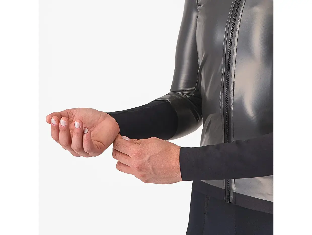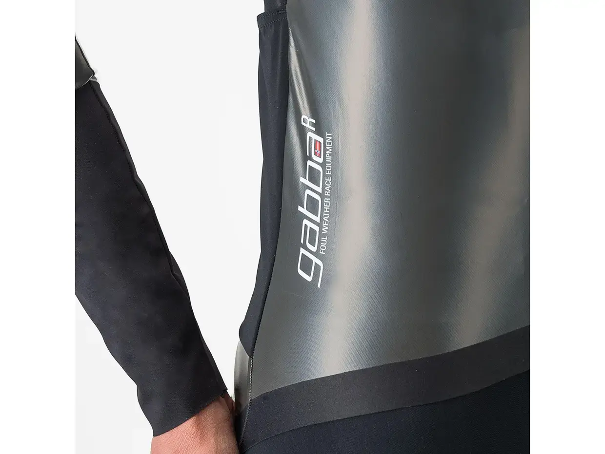 De volgende generatie Slecht weer-kleding is gearriveerd. De Gabba R is beschermender en aerodynamischer dan ooit tevoren. Hij is gemaakt om te voldoen aan de eisen van het profpeloton, waar elke watt telt. Hij is getest in de windtunnel als Castelli’s snelste jas, dus je weet dat je geen snelheid opoffert om droog te blijven. De stof is elektrogesponnen van een materiaal dat slechts 125 gram per vierkante meter weegt. Deze nieuwste variant Gabba is 100% PFAS-vrij.