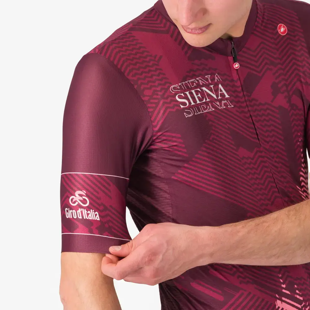 Het Castelli #GIRO Siena Fietsshirt Korte Mouwen verwijst naar de legendarische aankomst van etappe 9 in Siena, daags voor de tweede rustdag. Een historische stad die Castelli eert met dit shirt.Het is de ideale allround jersey voor al je ritten. Dit shirt biedt zowel comfort tijdens trainingsritten als snelheid tijdens snelle groepsritten of wedstrijden. De pasvorm is iets minder strak dan bij racegerichte modellen, maar de gebruikte stoffen zijn rekbaar genoeg om goed aan te sluiten bij verschillende lichaamsvormen. Het Strada micromesh op de voor- en achterkant en de mouwen zorgt voor optimale ventilatie en helpt je koel en droog te blijven tijdens inspannende ritten. De Tailwind stretchstof op de zijpanelen en zakken zorgt voor een aerodynamische pasvorm en voldoende flexibiliteit. Het anatomische ontwerp met zijpanelen die naar achteren wikkelen, draagt bij aan de perfecte pasvorm. Dankzij de YKK® Vislon®-ritssluiting over de hele lengte is de jersey eenvoudig te openen en te sluiten, ideaal voor snelle ventilatie op warme dagen. Het siliconen gripelastiek in de taille voorkomt dat het shirt omhoog kruipt, zelfs bij volle achterzakken. De drie achterzakken zijn ruim genoeg voor alles wat je nodig hebt tijdens lange ritten.Dit wordt je go-to jersey als je stijlvol de stad uit wilt en optimaal wilt genieten van zowel comfort als prestaties.