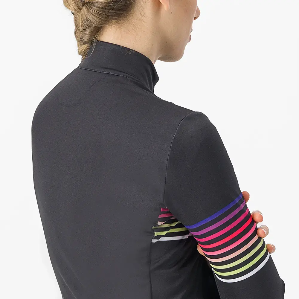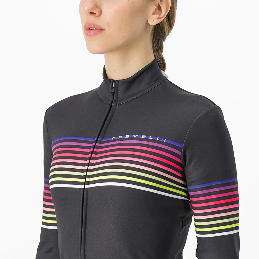 Het Ottanta Fietsshirt Lange Mouwen is een stijlvol fietsshirt voor de koelere dagen. Als het prachtig weer is maar de temperatuur maakt een kort shirtje onaangenaam, dan biedt een shirt met lange mouwen zoals deze Ottanta een uitkomst! Het schirt is voorzien van opvallende, maar niet te aanwezige horizontale strepen, die bovendien je zichtbaarheid enorm verhogen. Dit thermo-fietsshirt is voorzien van uitmuntende waterbestendigheid. Als het kouder wordt is het shirt bovendien goed te combineren met een windvest. Met het Ottanta Fietsshirt Lange Mouwen begin of eindig je het seizoen in stijl!