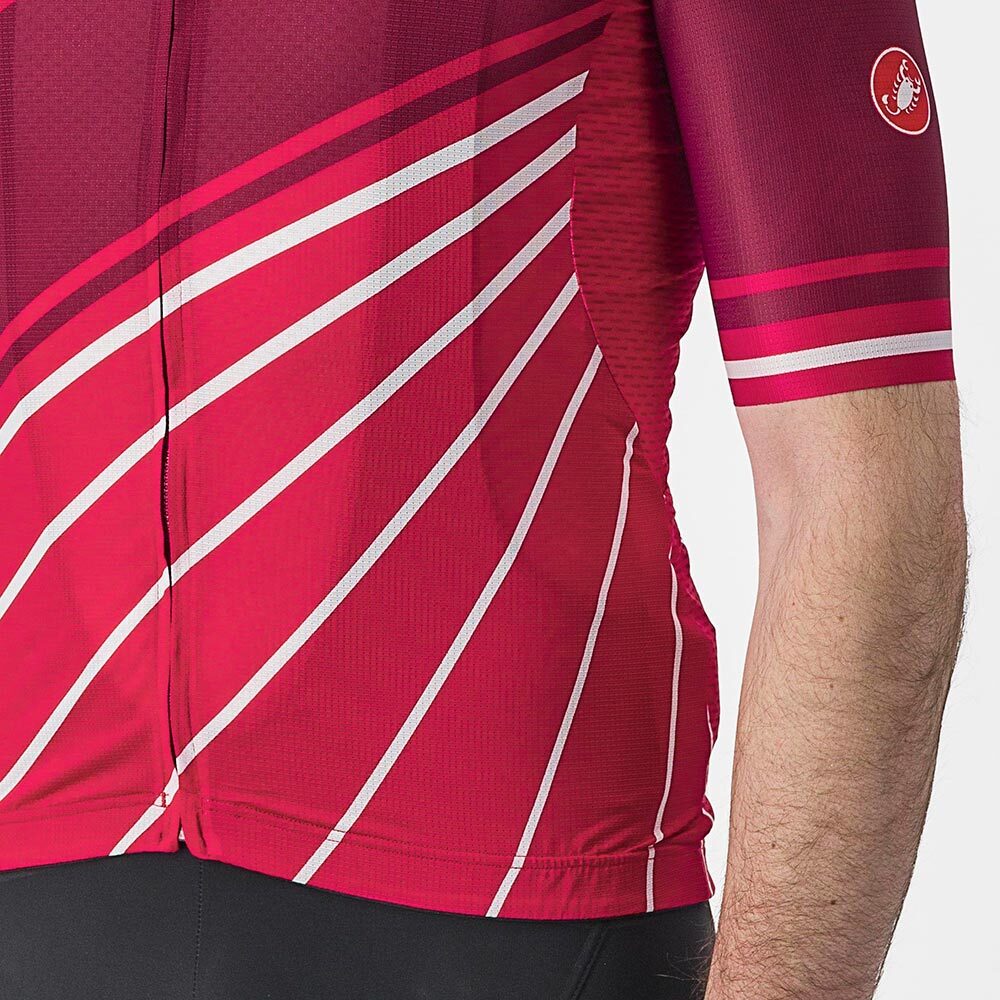 Dit Speed Strada Fietsshirt bouwt verder op het succes van de Competizione 2 Jersey. Het is dan ook een echte allrounder: hij biedt comfort tijdens lange duurtraining, maar voldoende snelheid tijdens snelle groepsritten of in wedstrijden. De pasvorm is minder strak dan sommige andere shirts van Castelli, maar de stoffen rekken goed mee. Daardoor volgen ze toch de vormen van je lichaam. Er is gebruik gemaakt van een materiaal dat Castelli ‘Strada micromesh’ noemt. Dat helpt zweet af te voeren en jou op een comfortabele temperatuur te houden. Op de achterzijde zitten drie insteekzakken die lekker ruim zijn, voor alles wat je nodig hebt tijdens je rit.
