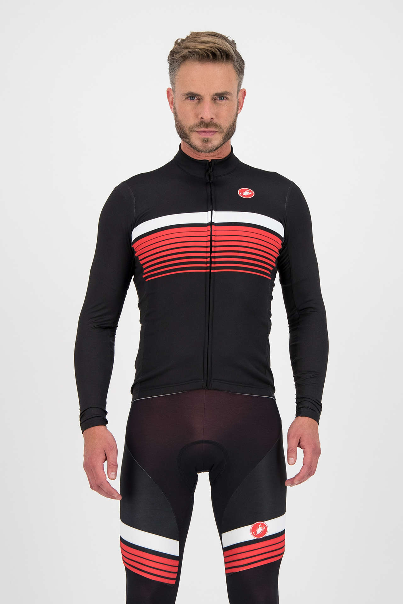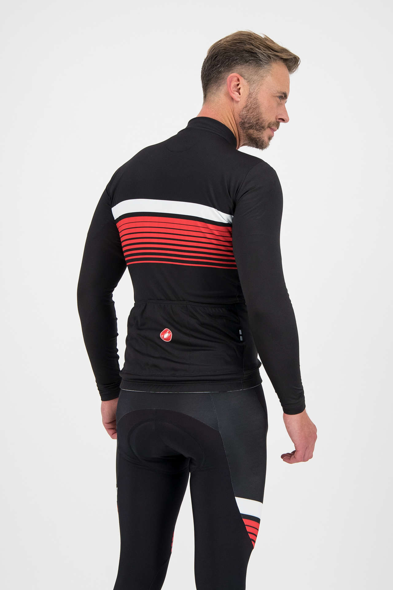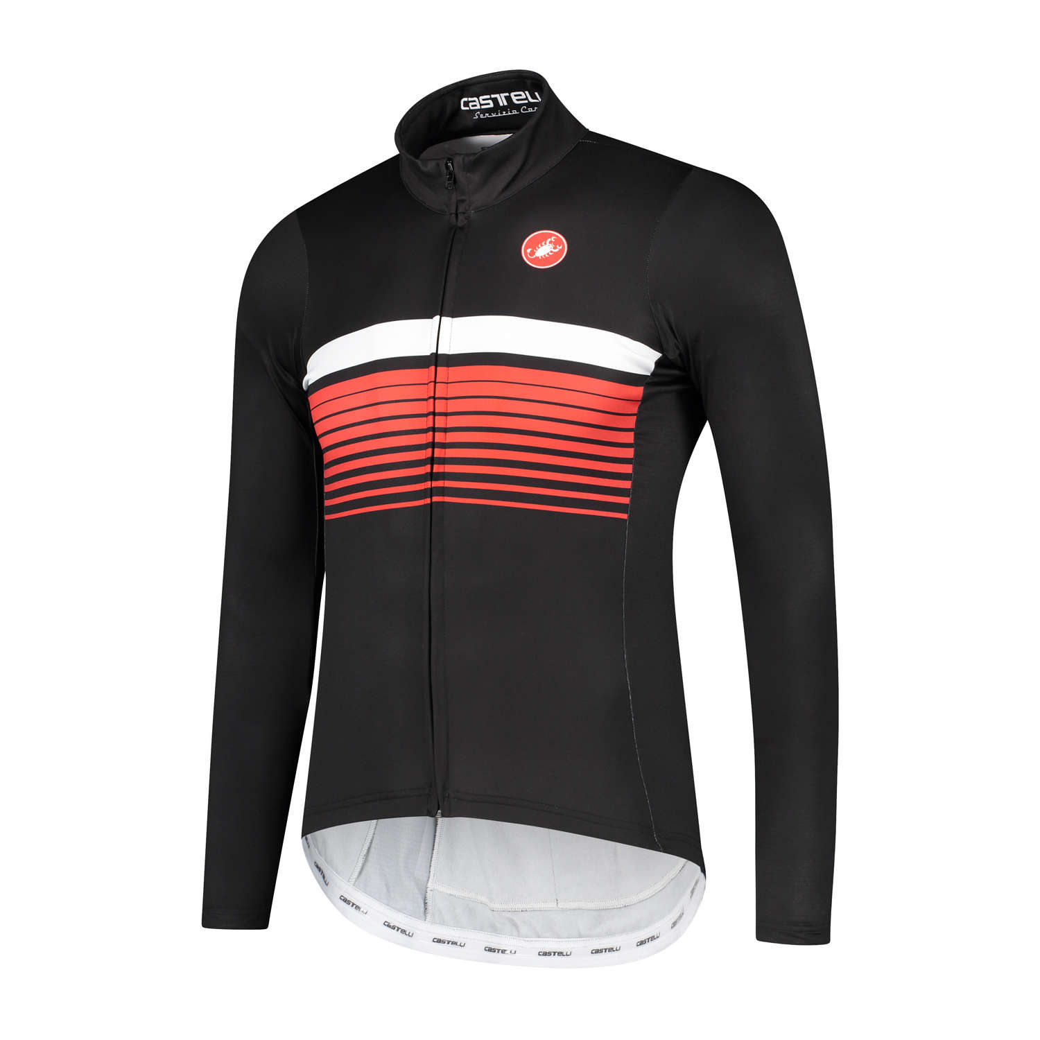 Het Castelli Thermal Futurumshop Fietsshirt met lange mouwen is ideaal als shirt voor het vroege voorjaar of de mooiere dagen in het najaar. Deze uitvoering met rood-zwarte print is speciaal ontworpen voor FuturumShop en is dus exclusief bij ons verkrijgbaar! Je combineert hem perfect met de Sorpasso FuturumShop Fietsbroek, die ook speciaal voor ons ontworpen is. Het shirt sluit erg mooi op je lichaam aan waardoor je weinig extra weerstand hebt tijdens het fietsen. Op de voorzijde zit een volledige ritssluiting waardoor je hem makkelijk aan en uit trekt. Op de achterkant zitten 3 steekzakken, erg handig voor gelletjes of een windjack. De verschillende reflecterende componenten zorgen voor een stukje extra veiligheid in donkere omstandigheden.