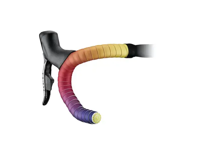 Het Ciclovation Poly Touch Stuurlint is ontworpen voor rijders die naast prestaties ook op zoek zijn naar de juiste stijl. De synthetisch leren buitenlaag is niet alleen visueel uniek met een opvallend kleurverloop, maar biedt ook uitstekende grip in natte én droge omstandigheden. Dankzij een meervoudige foamconstructie met verschillende dichtheden worden schokken effectief gedempt en wordt vermoeidheid in je handen verminderd tijdens lange ritten. De zelfklevende laag laat geen lijmresten achter en maakt herinstallatie eenvoudig. De meegeleverde vergrendelbare barplugs en duurzame finishing tape zorgen voor een veilige en nette afwerking van je stuur.