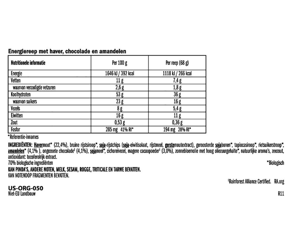 Allergie informatie kan pinda’s, andere noten, melk, sesam, rogge, tarwe en triticale bevatten