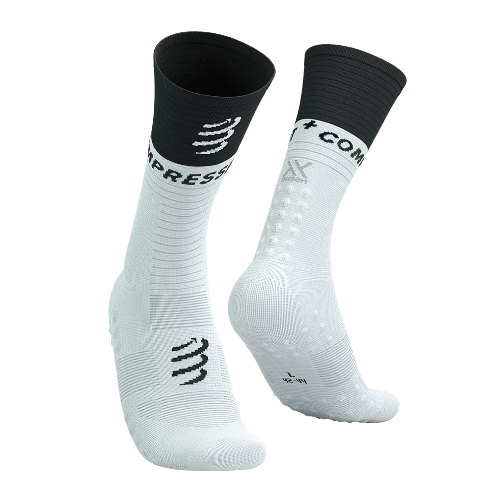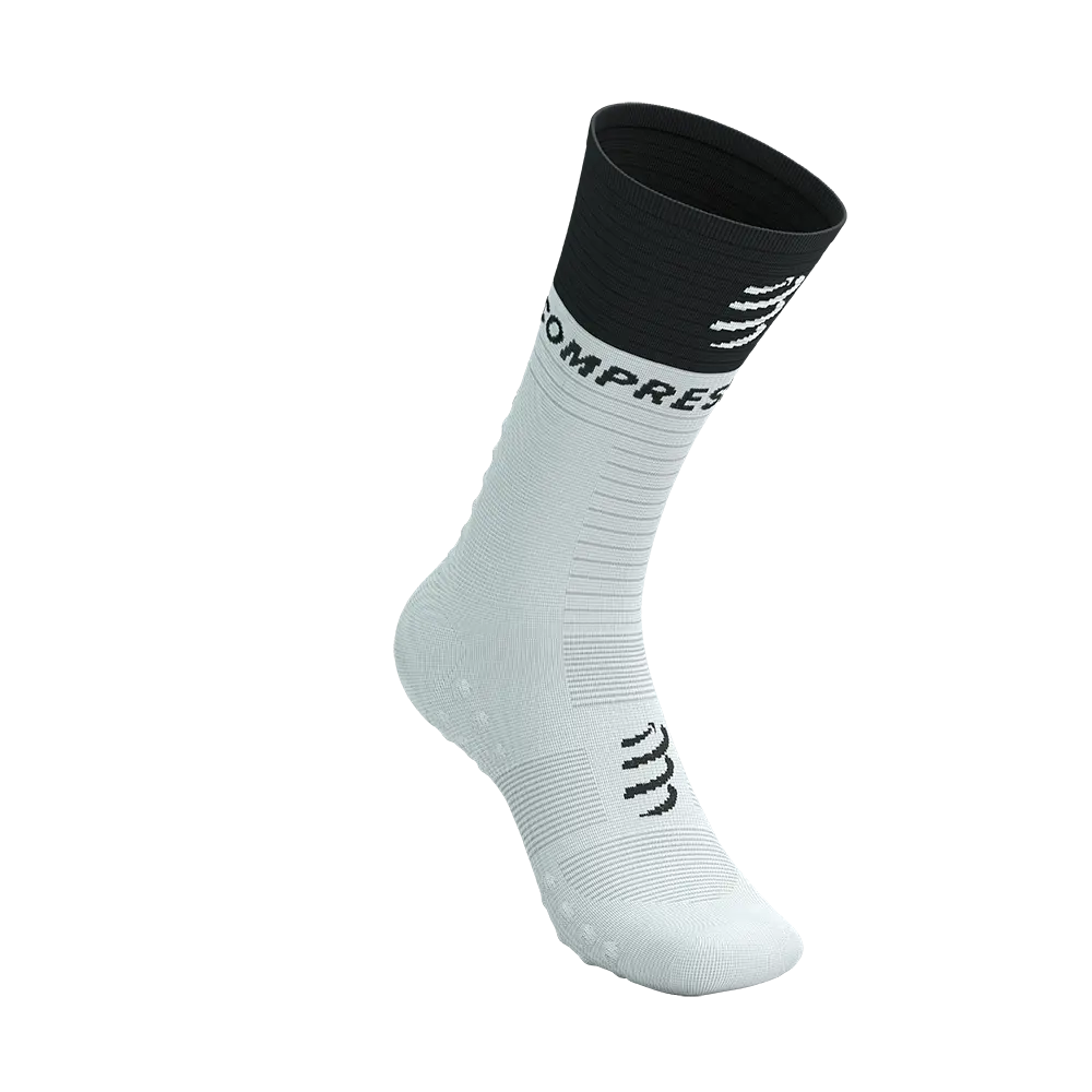 De Compressport Mid V2.0 Compressiesokken voelen als een super comfortabele tweede huid om je enkel en kuit. De sokken bieden compressie tot halverwege de kuit in combinatie met maximale ventilatie en met minimaal gewicht. De sokken zijn perfect voor wanneer je het beste uit je activiteit wilt halen. De sokken bieden de juiste compressie voor elke spier, waardoor je prestatie verbeterd wordt en vermoeidheid wordt verdrongen. De exceptionele ademende eigenschappen over de gehele sok (360°) worden bereikt door het gebruik van extreem dunne garen en mesh panelen. Hierdoor blijven je voeten fris en droog, zelfs in de warmste omstandigheden. Tenslotte beschikken de sokken over 3D.dot technologie. Hierdoor zorgen de sokken voor minimale luchtweerstand en grip in de sokken. Als je erop gaat hardlopen heb je bovendien de voordelen van een stukje extra demping bij het neerkomen van de schoen.
