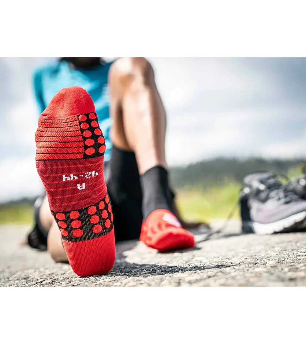 Met de Compressport Pro Marathon Compressiesokken kan jij iedere afstand aan zonder last te hebben van je voeten. Deze sokken zijn speciaal ontwikkeld voor het hardlopen en voorkomen blaren! De sokken zijn voorzien van anti-slipmateriaal op de voetzool zodat ze niet gaan schuiven in je schoenen en je geen branderig gevoel zal krijgen. De verschillende paddings in de sok zorgen voor optimaal comfort. Ook hebben deze sokken erg goede vochtregulerende eigenschappen.