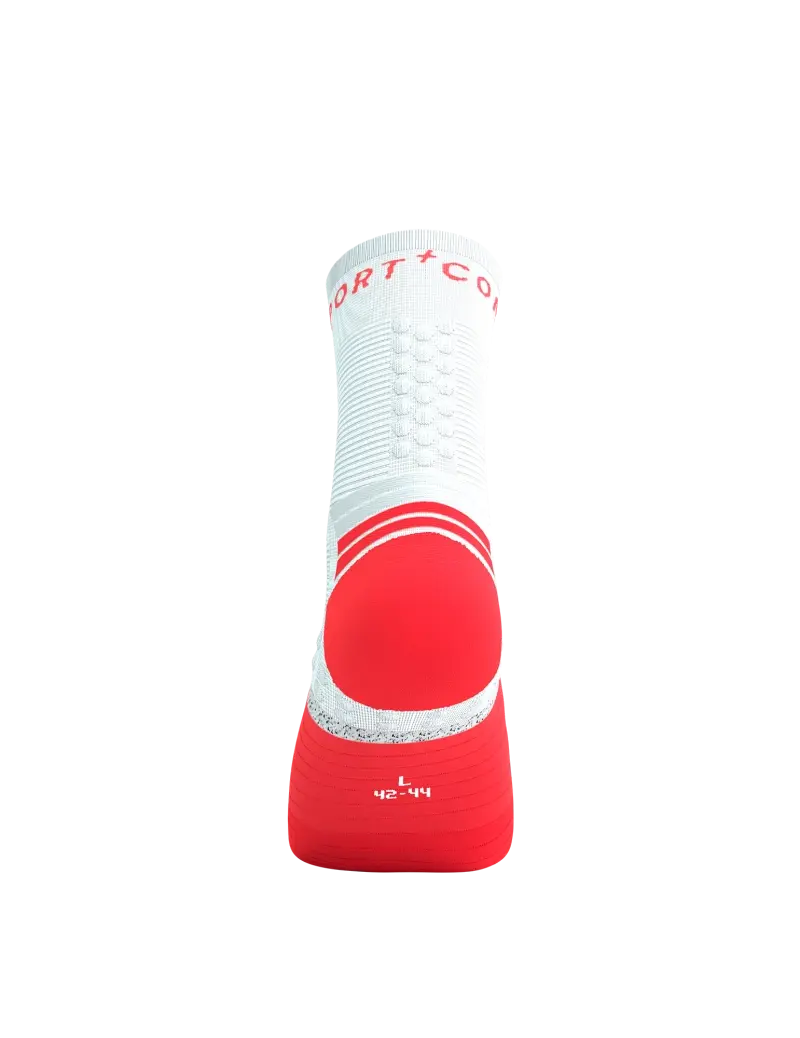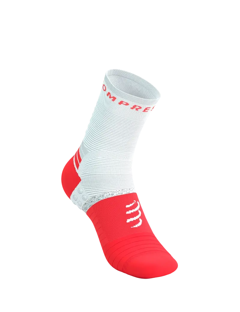 Met de Compressport Pro Marathon V2.0 Compressiesokken kan jij iedere afstand aan zonder last te hebben van je voeten. Deze sokken zijn speciaal ontwikkeld voor het hardlopen en voorkomen oververhitte voeten en blaren! De sokken zijn voorzien van anti-slipmateriaal op de voetzool zodat ze niet gaan schuiven in je schoenen en je geen branderig gevoel zal krijgen. De voetboogsupport biedt medisch bewezen compressie om de bloedstroom te stimuleren, terwijl het materiaal niet schuurt of dubbelvouwt. Ook hebben deze sokken erg goede vochtregulerende eigenschappen.