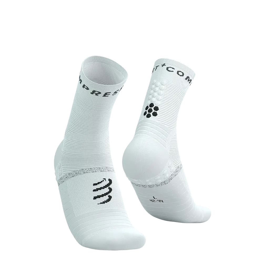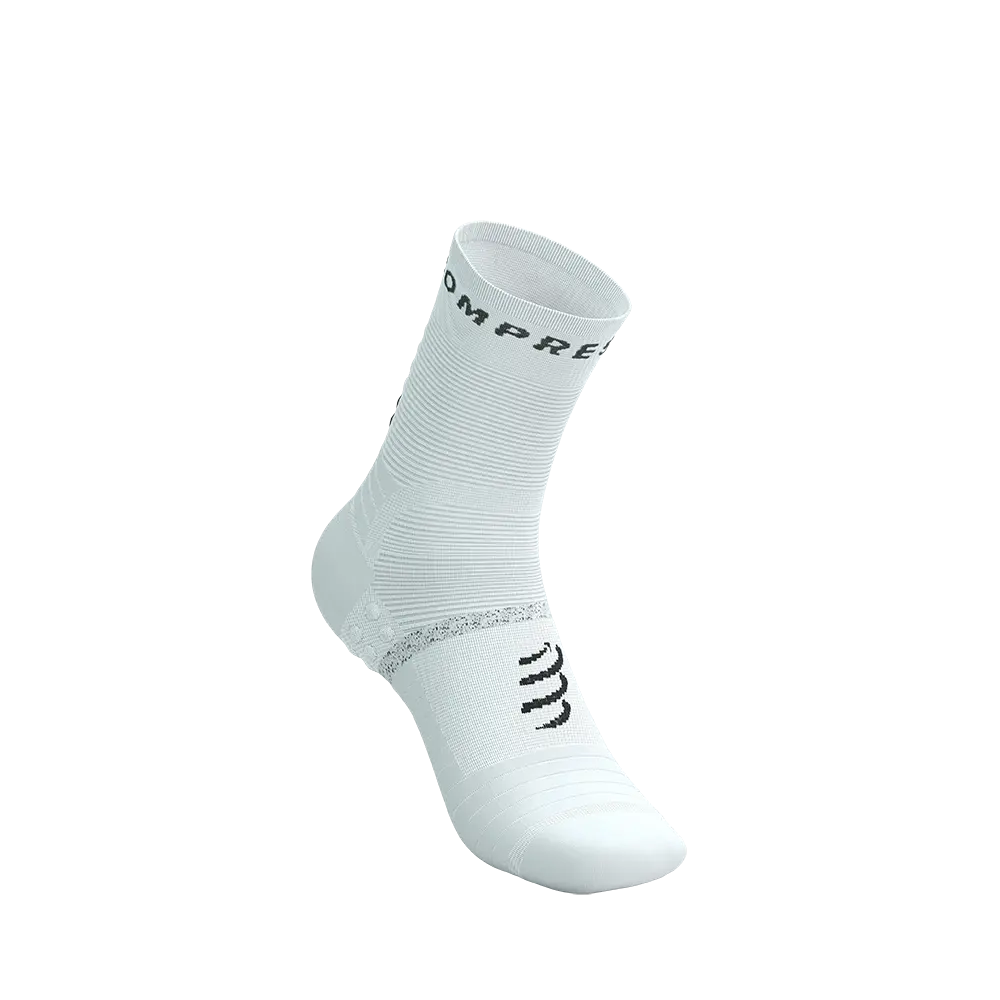 Met de Compressport Pro Marathon V2.0 Compressiesokken kan jij iedere afstand aan zonder last te hebben van je voeten. Deze sokken zijn speciaal ontwikkeld voor het hardlopen en voorkomen oververhitte voeten en blaren! De sokken zijn voorzien van anti-slipmateriaal op de voetzool zodat ze niet gaan schuiven in je schoenen en je geen branderig gevoel zal krijgen. De voetboogsupport biedt medisch bewezen compressie om de bloedstroom te stimuleren, terwijl het materiaal niet schuurt of dubbelvouwt. Ook hebben deze sokken erg goede vochtregulerende eigenschappen.