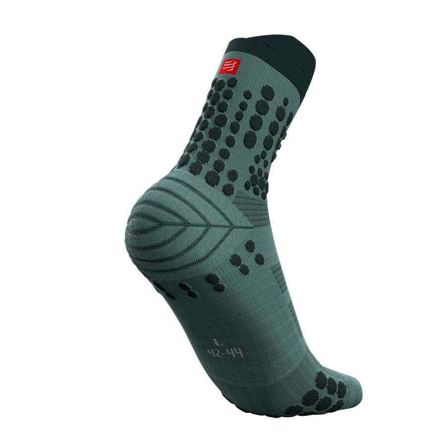De Compressport Pro Racing V3.0 Run Low Compressiesokken zijn zeer geschikt voor warmere, zomerse omstandigheden en zorgen voor ondersteuning en spierstimulatie tijdens het hardlopen. De laag uitgesneden Pro Racing Compressiesok is speciaal bedoeld voor lopers die hun voeten wat extra comfort willen geven en de spieren positief willen stimuleren bij de prestatie. De 3D.DOTS zorgen voor massage aan de onderzijde van de voet, zodat de bloedsomloop wordt gestimuleerd en daarmee de voet meer zuurstof kan opnemen. Dit komt ten goede van de prestaties van de voetspieren. De sokken beperken de kans op blessures, spierpijn of kramp en zorgen dat de spieren sneller herstellen. Tevens biedt de sok ondersteuning aan de voetboog en absorbeert deze schokken en trillingen die schadelijk kunnen zijn voor pezen, spieren en gewrichten.